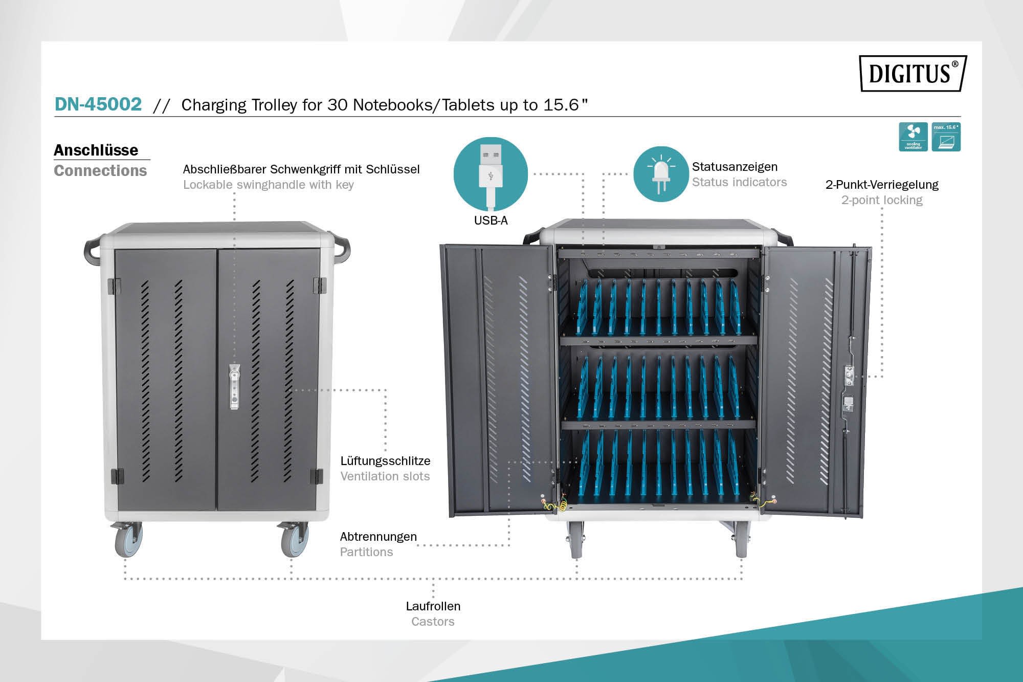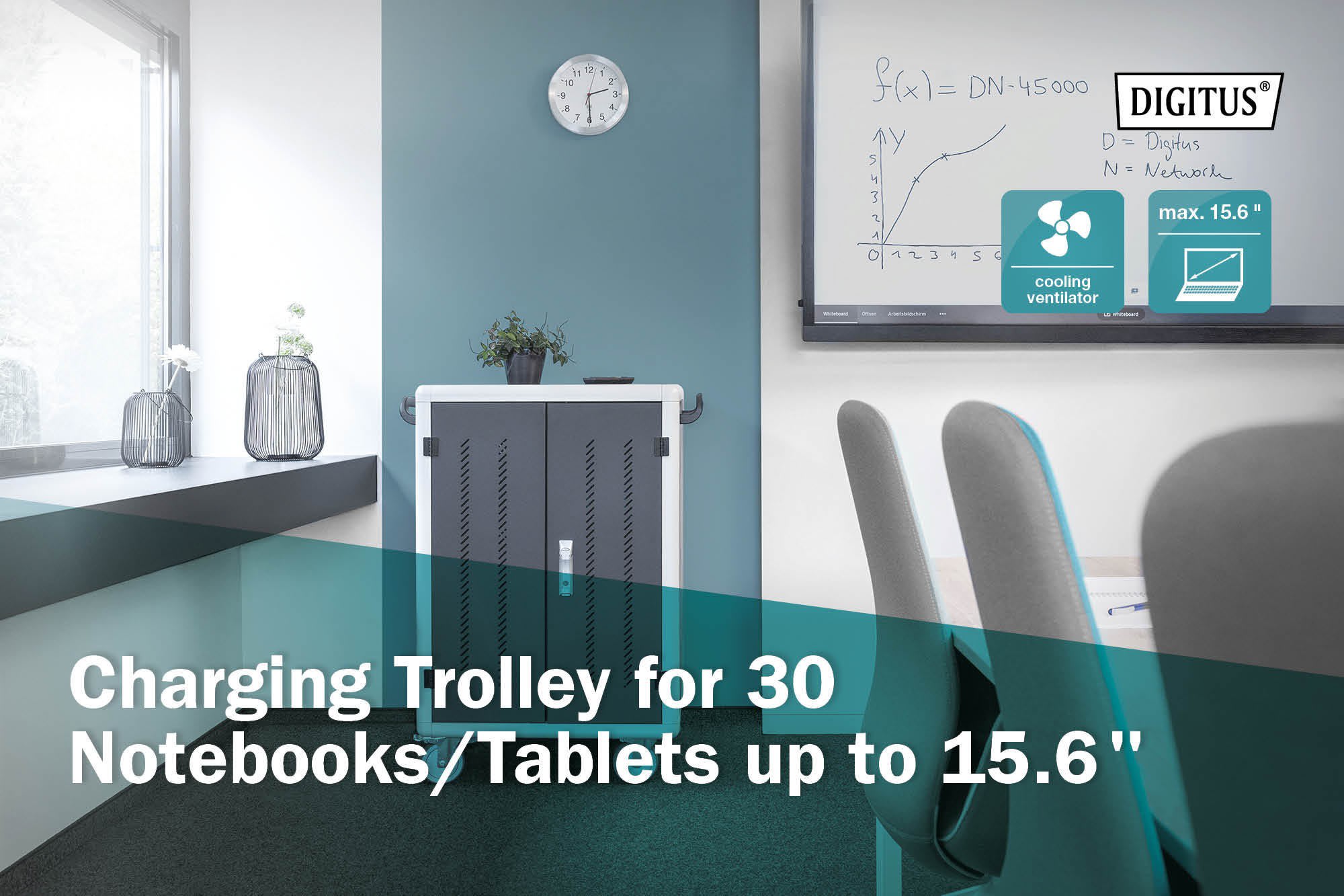 Assmann Electronic - Armoire charge mobile, 30 stations, noir 1100 x 700 x 650 mm, USB, PDU, ventil. - DN-45002