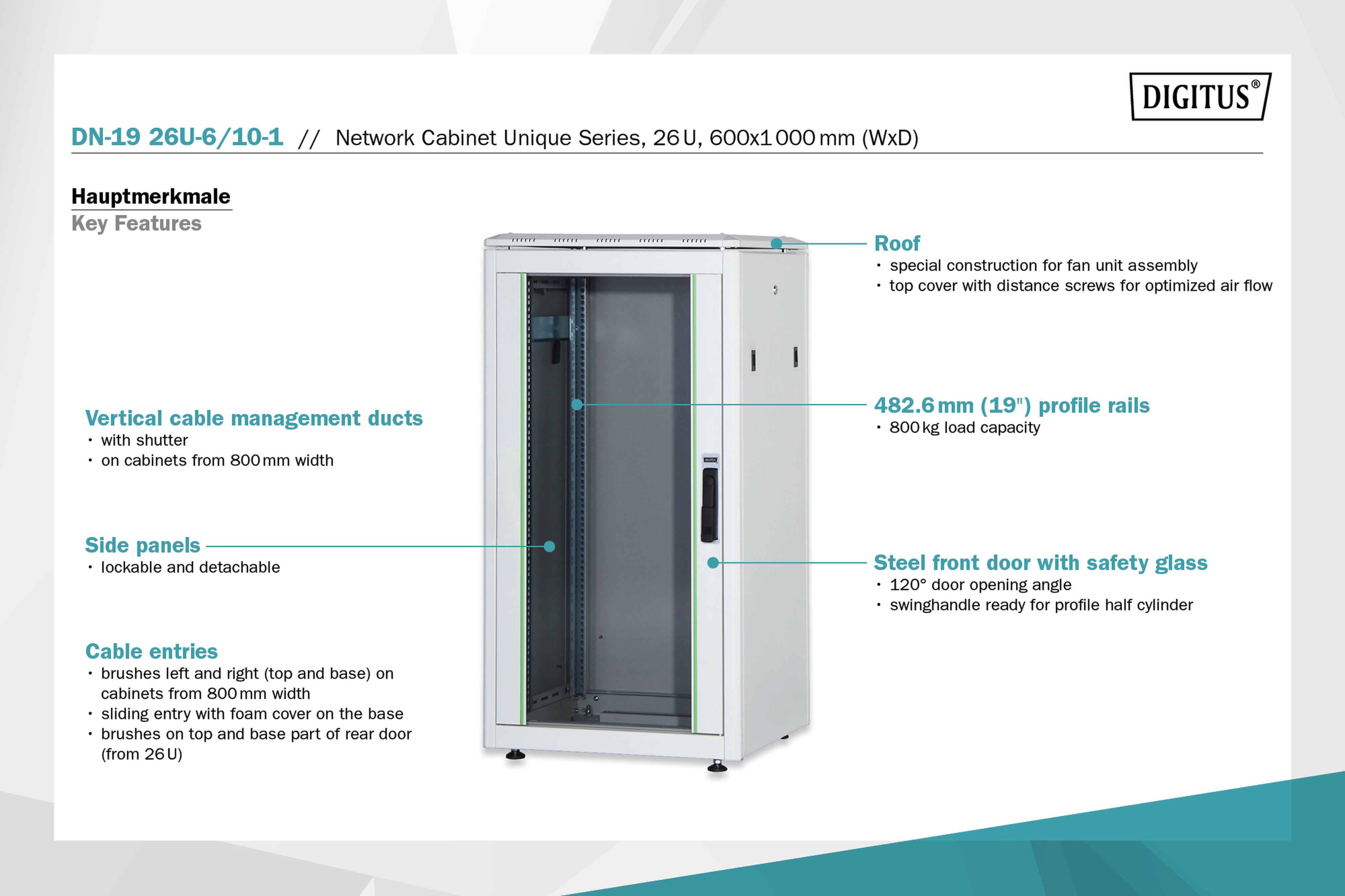 Assmann Electronic - Armoire réseau 26U, Unique 1342x600x1000 mm, couleur gris (RAL 7035) - DN-19 26U-6/10-1