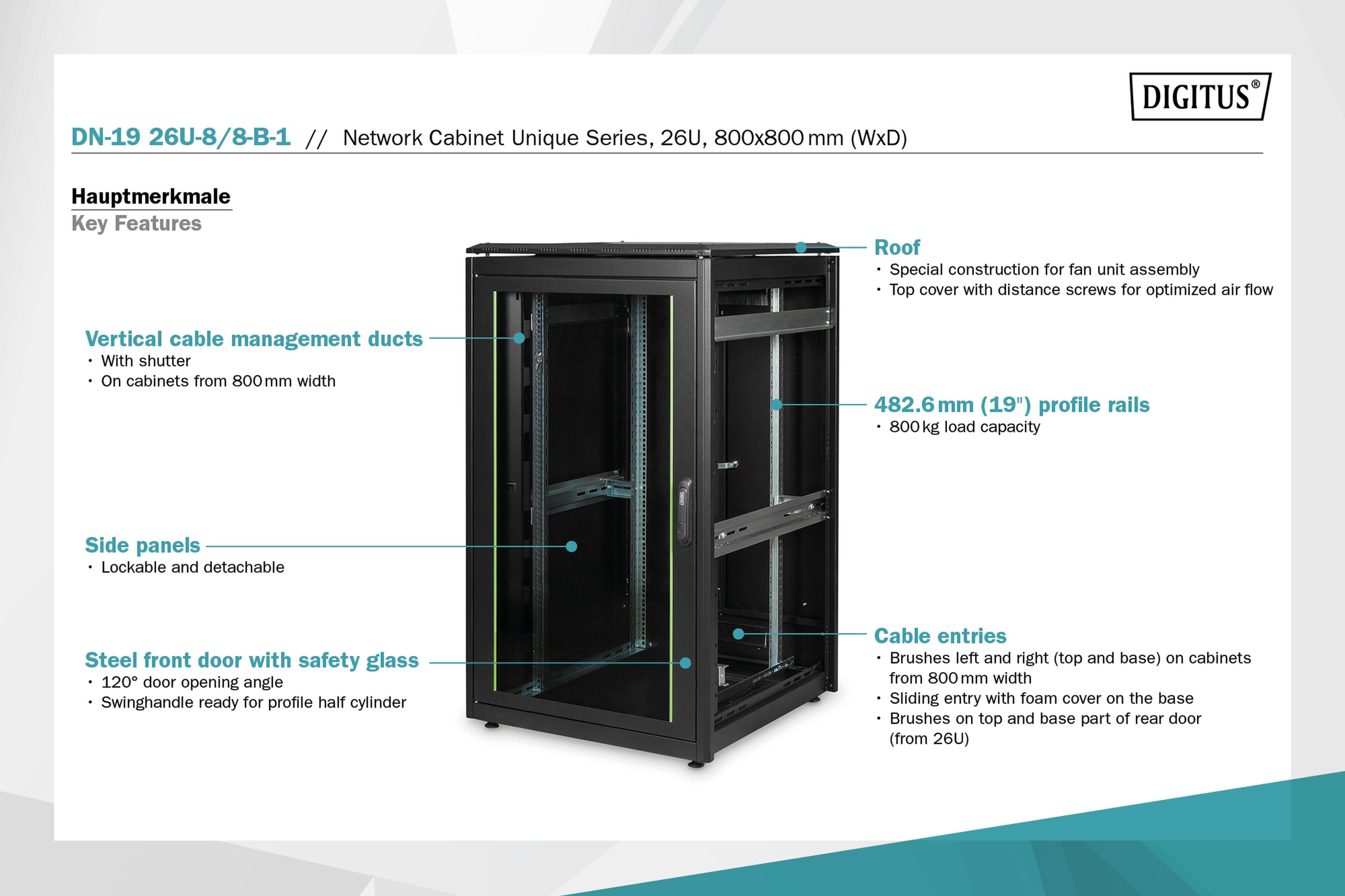 Assmann Electronic - Armoire réseau 26U, Unique 1342x800x800 mm, couleur noire (RAL 9005) - DN-19 26U-8/8-B-1