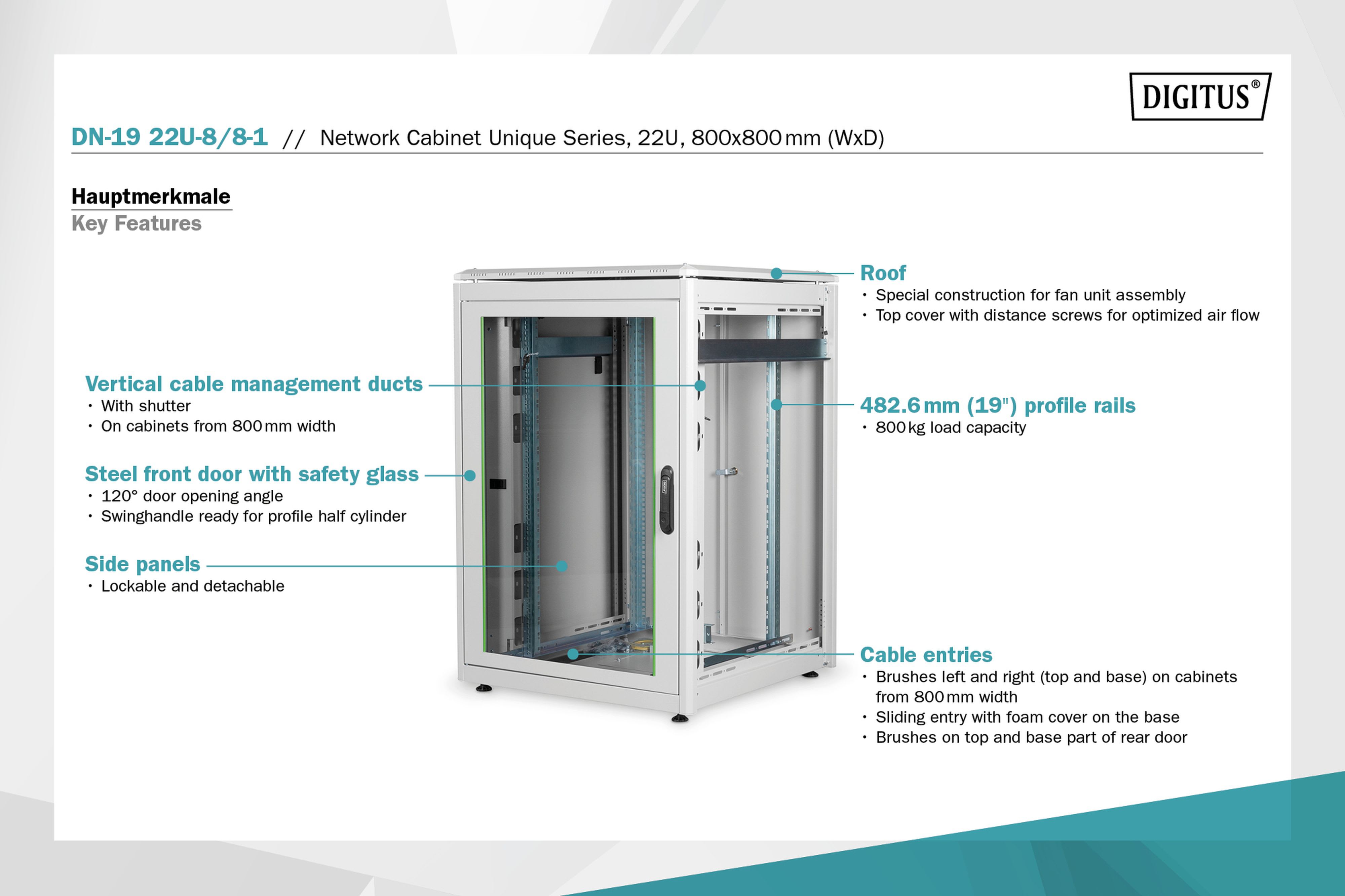 Assmann Electronic - Baie réseau 22U, Unique 1164x800x800 mm, couleur gris (RAL 7035) - DN-19 22U-8/8-1