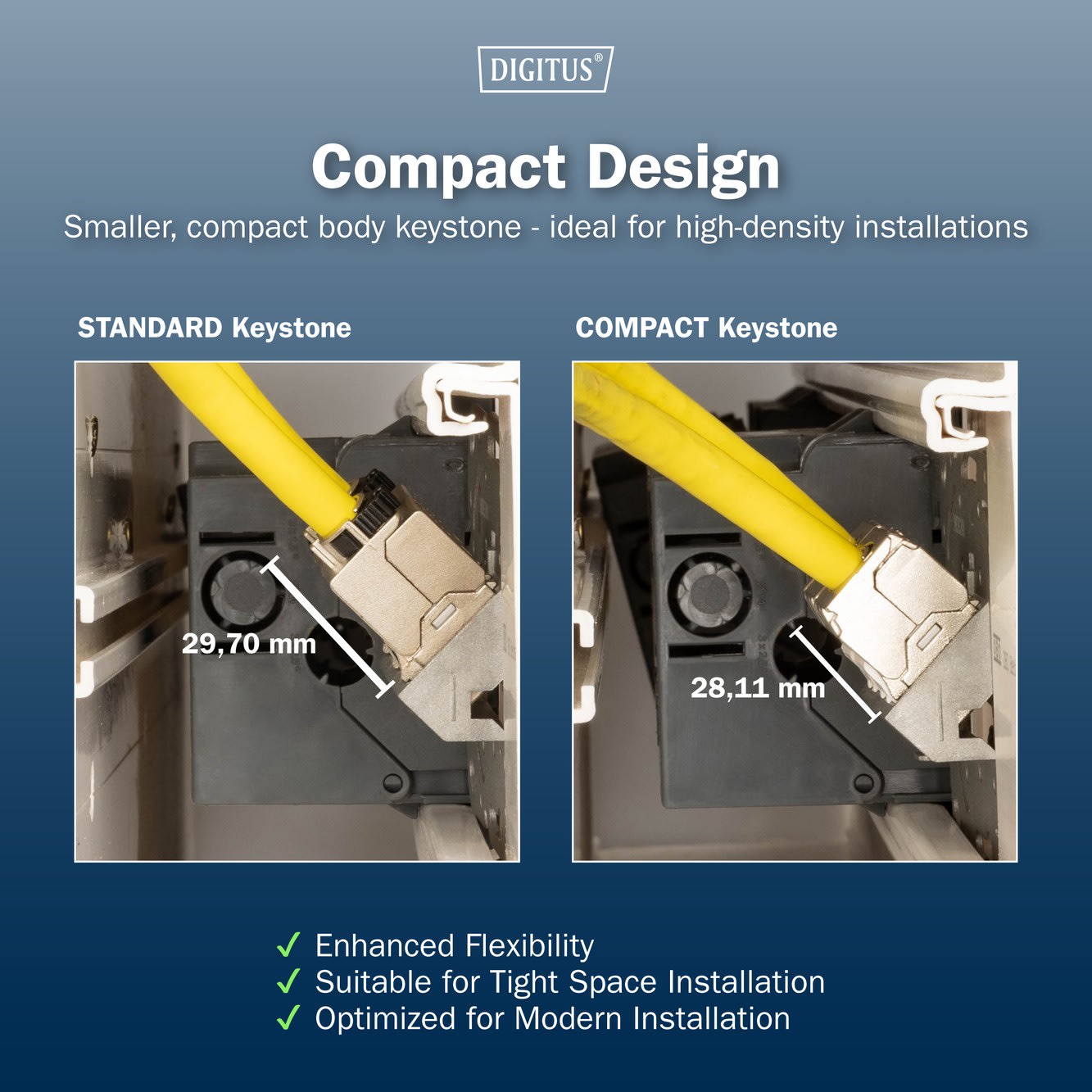 Assmann Electronic - Boîtier compact CAT6 Keystone Module, blindé, connexion sans outil, 4 pièces - DN-93615-S-4