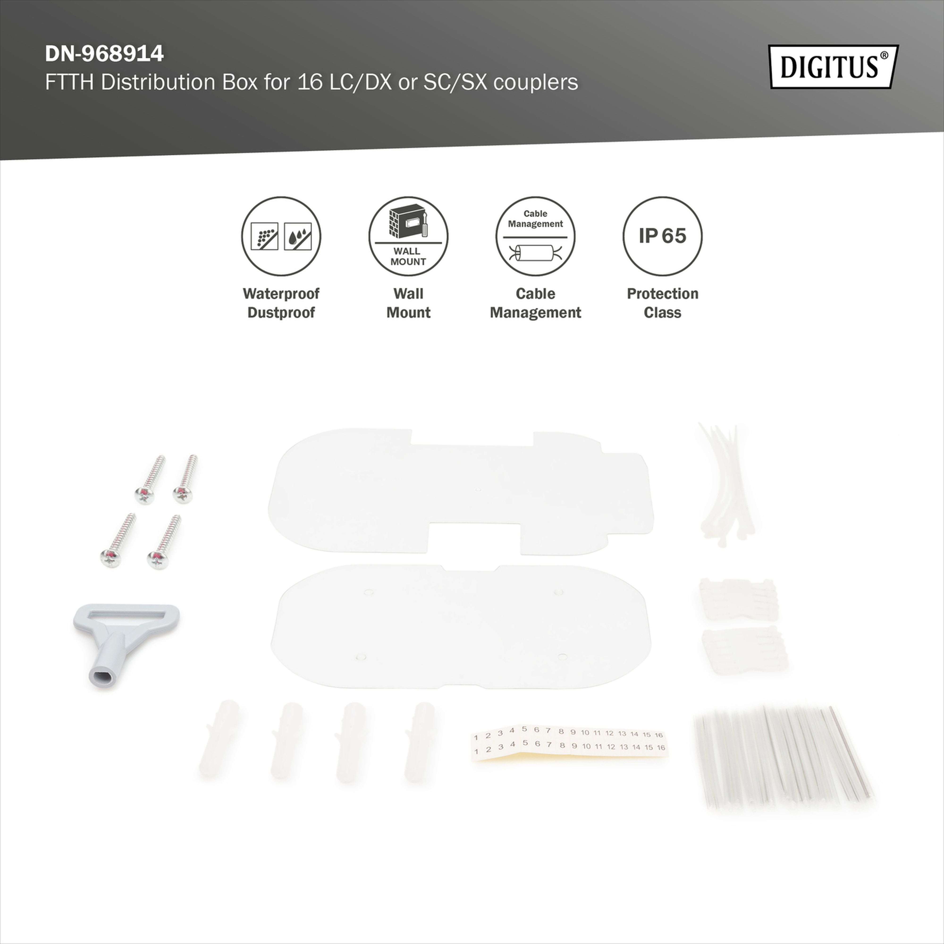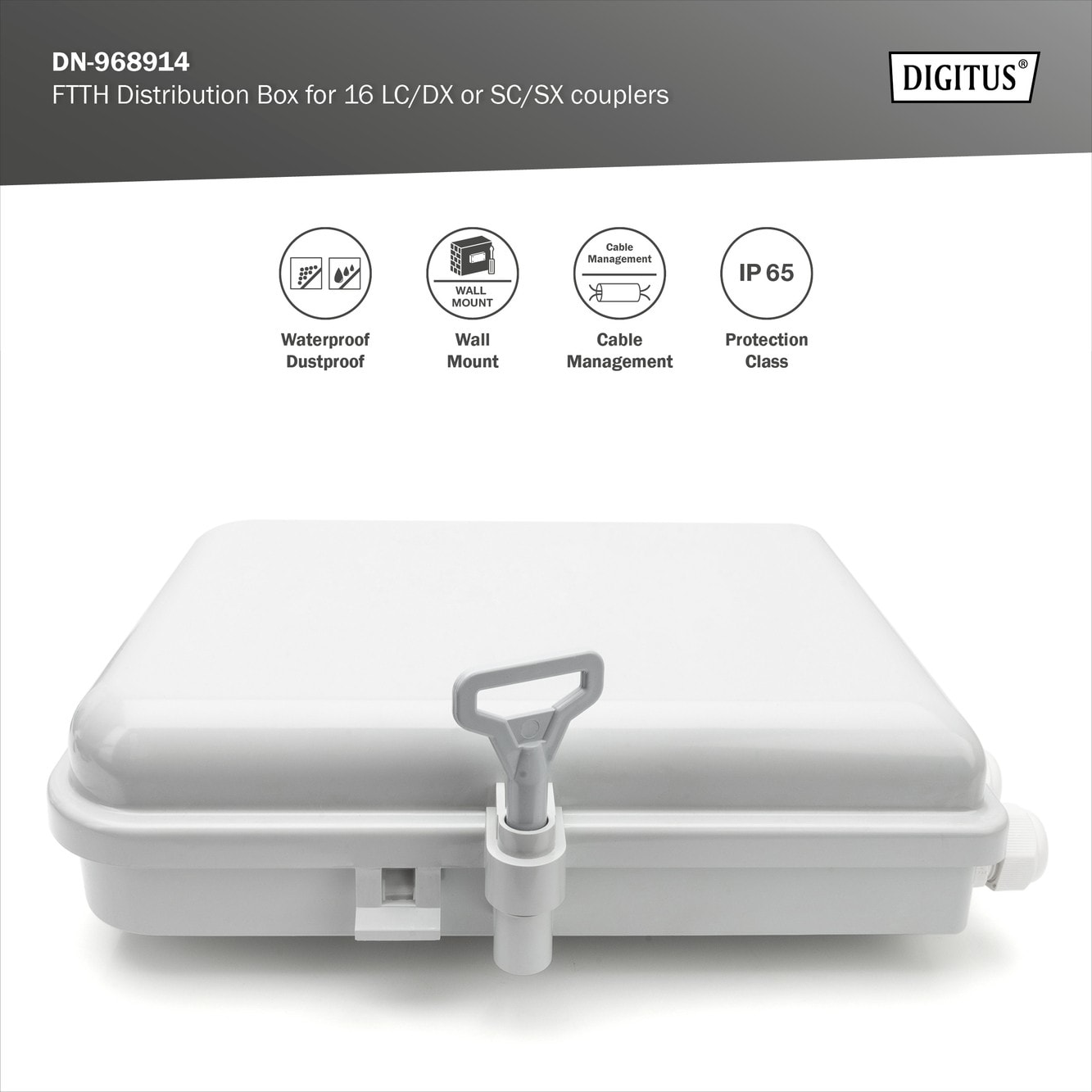 Assmann Electronic - Boîtier distribution FTTH extérieur pour 16 câbles et 16xLC/DX ou SC/SX - DN-968914