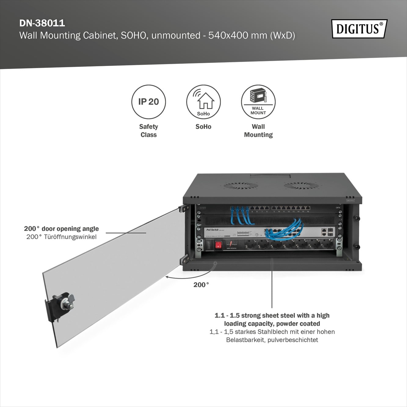 Le boîtier mural DIGITUS® a été mis au point, conçu et fabriqué pour répondre aux exigences de l’infrastructure informatique.