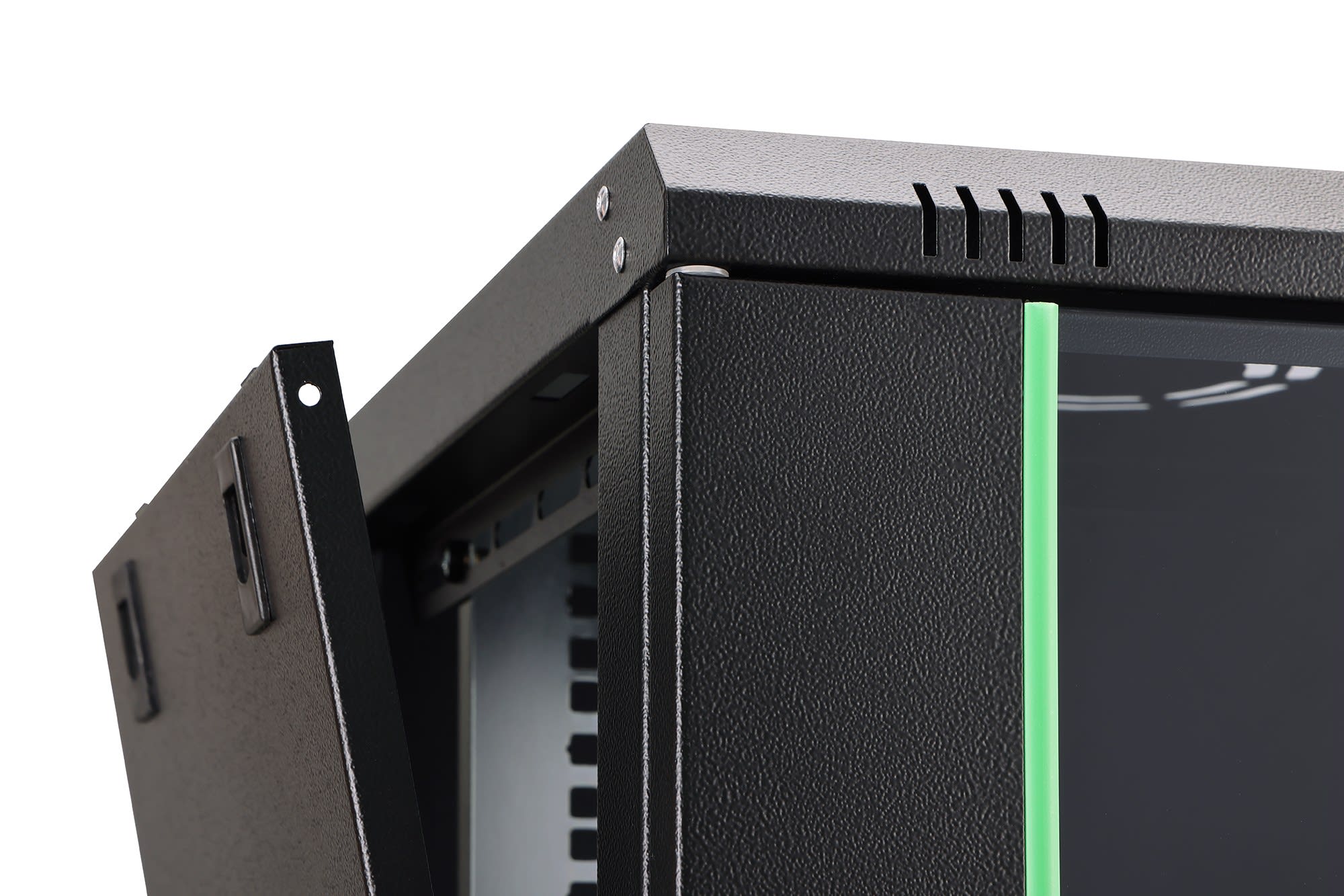 Le toit et le panneau arrière de chaque armoire sont équipés d'un passe-câble prédécoupé. Chaque armoire a une construction en acier d'une épaisseur de 1,5mm. Les panneaux latéraux et la porte frontale amovible améliorent l'accessibilité.