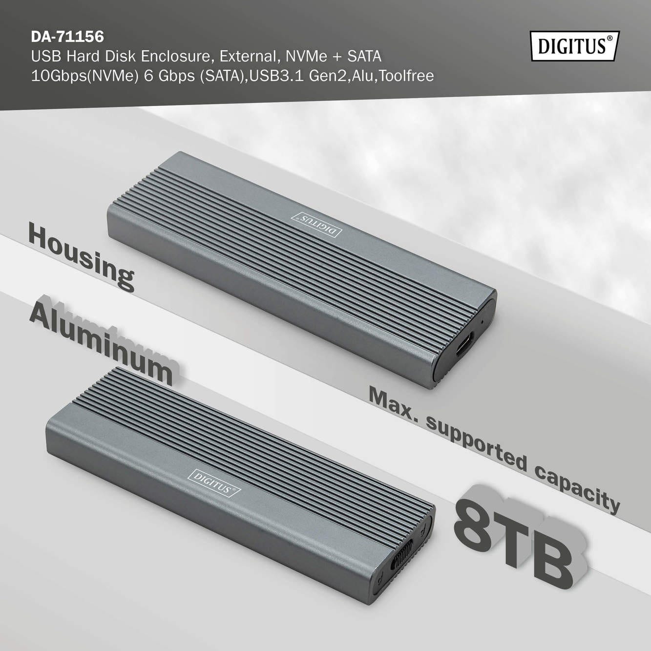 Assmann Electronic - Boîtier USB HDD extern NVMe + SATA 10Gbps(NVMe) 6 Gbps (SATA),USB3.1 Gen2, alu - DA-71156