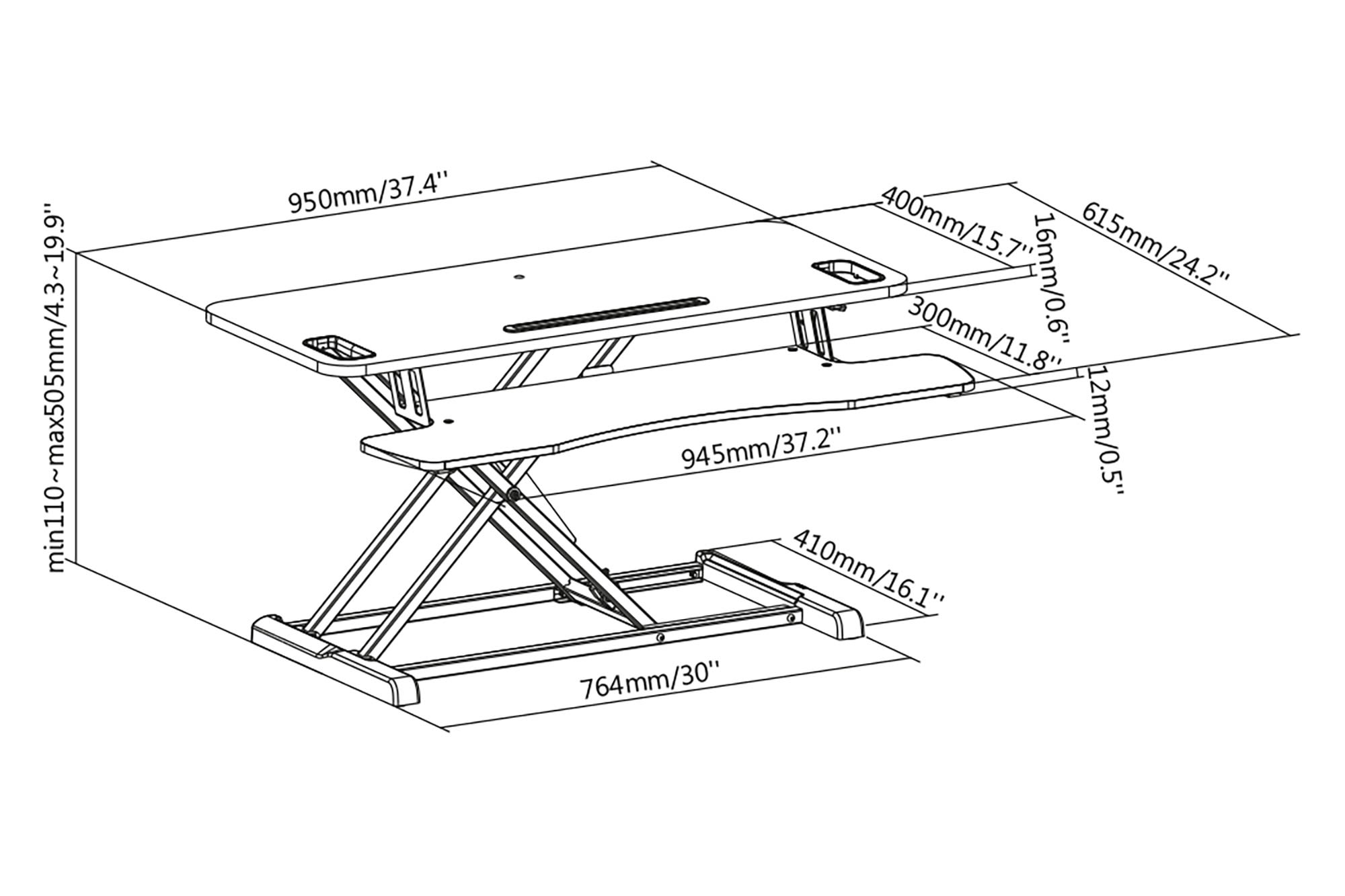 Assmann Electronic - Bureau réglable en hauteur, assis/debout, 95x61x11cm, clavier et souris, noir - DA-90380-1