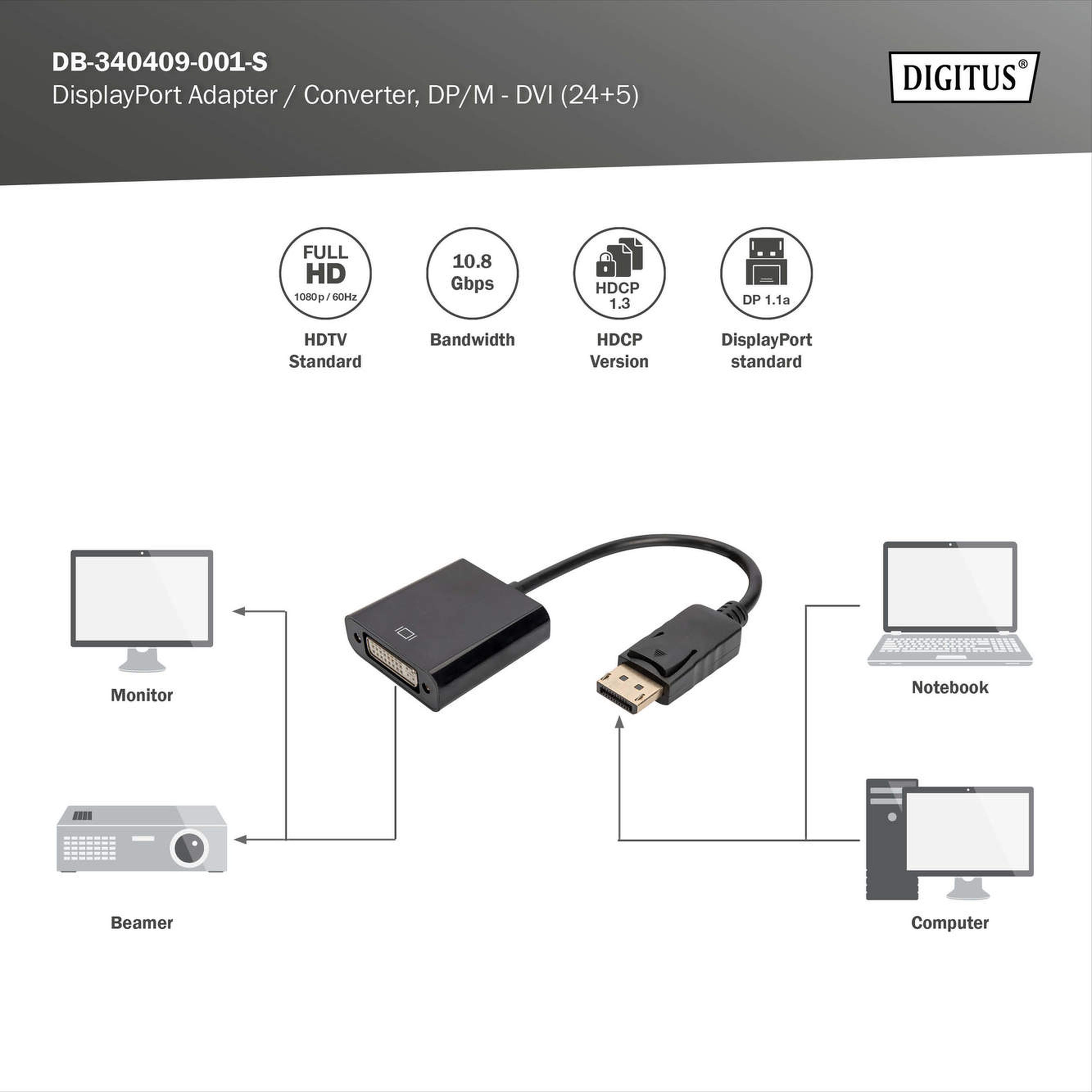 Assmann Electronic - Câble 0,15m DP - DVI (24+5) M/F, 0.15m,w/interlock, DP 1.1a, noir - DB-340409-001-S