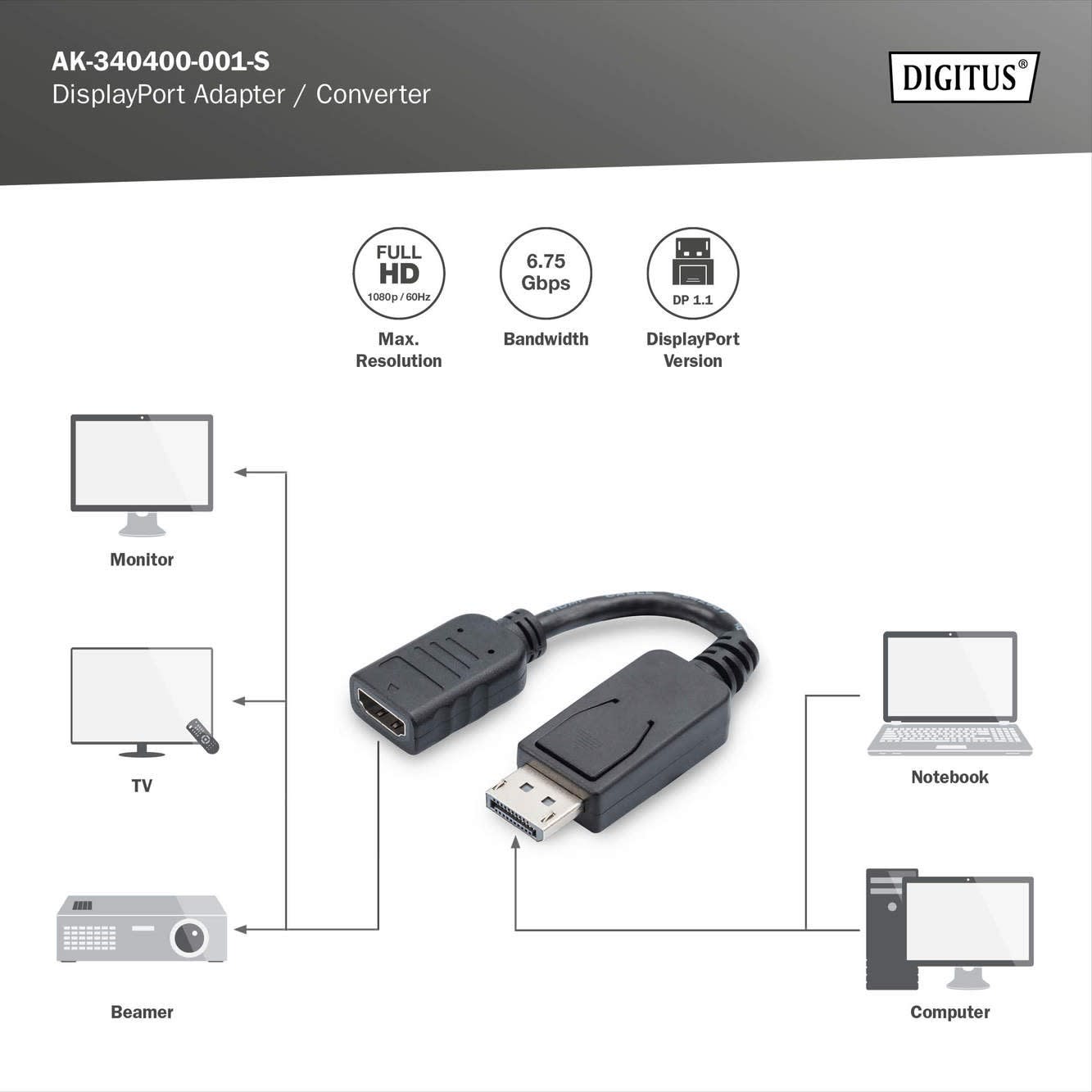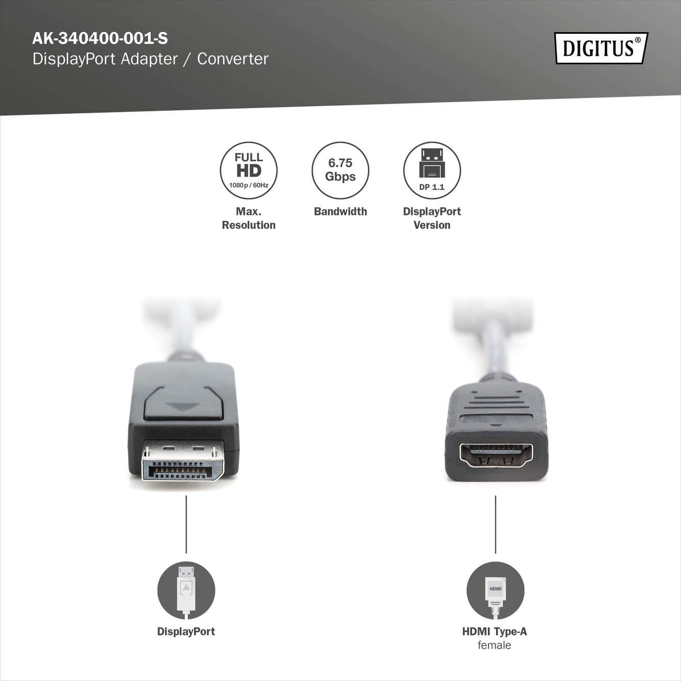 Assmann Electronic - Câble adaptateur DP - HDMI A M/F 0.15m verrouillage compatible DP 1.1a CE noir - AK-340400-001-S