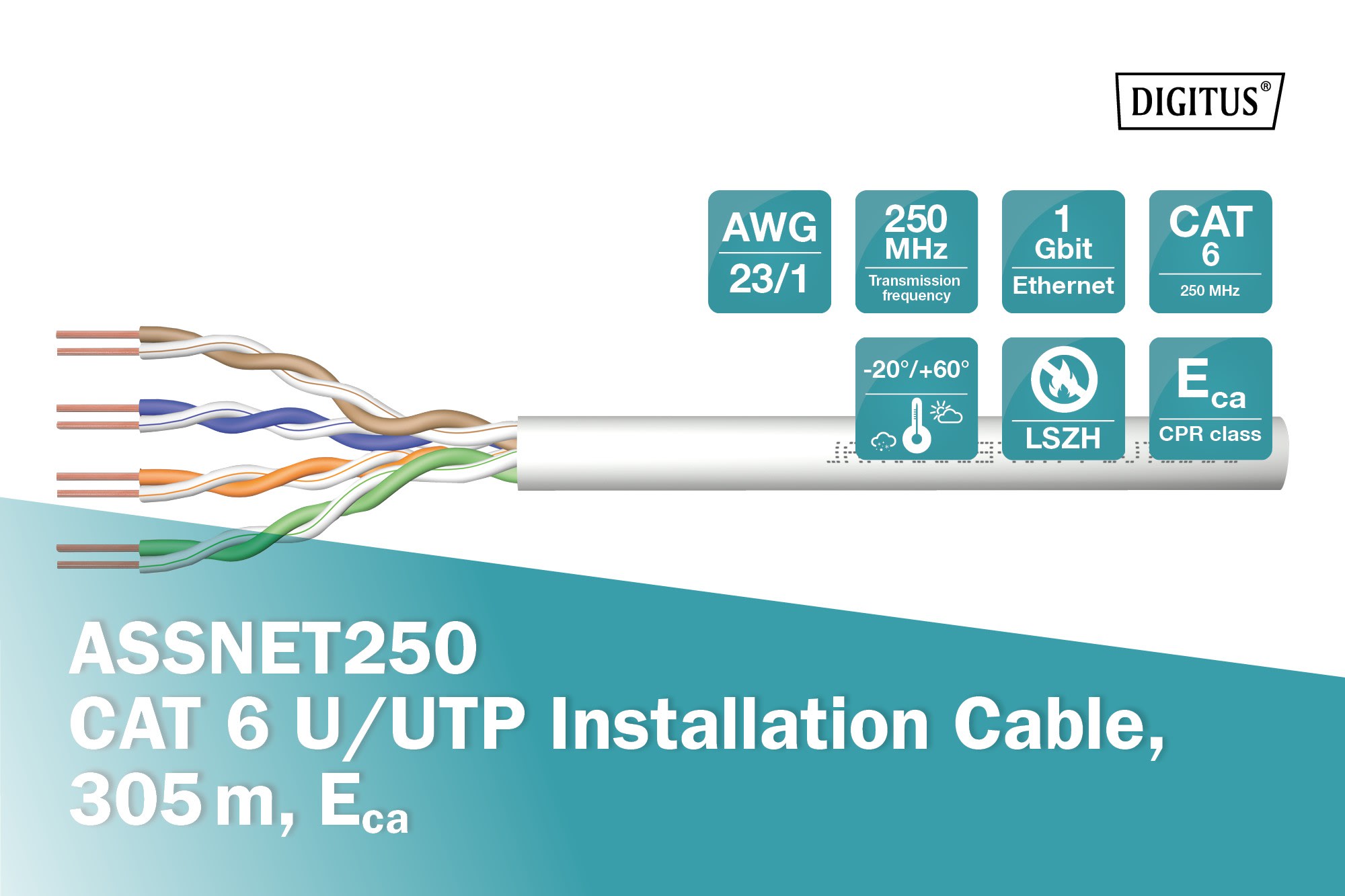 Assmann Electronic - Câble ASSNET250 CAT6 U-UTP, 250 MHz Eca PVC, AWG 23/1, carton 305m, Sx, gris - ACU-4611-305
