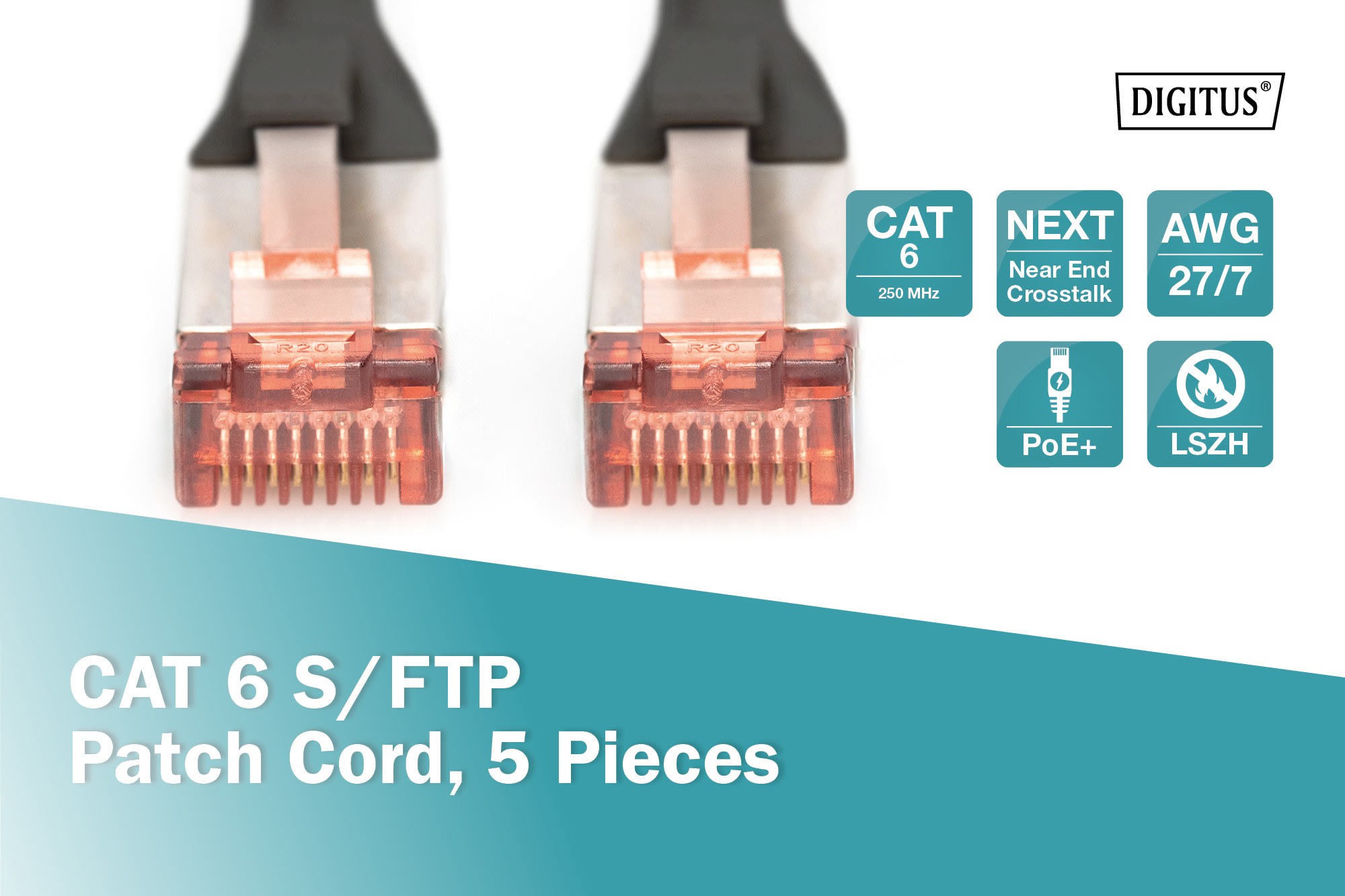 Assmann Electronic - Câble CAT6 S-FTP, Cu, LSZH AWG 27/7, longueur 10 m, 5 pièces, couleur noir - DK-1644-100-BL-5