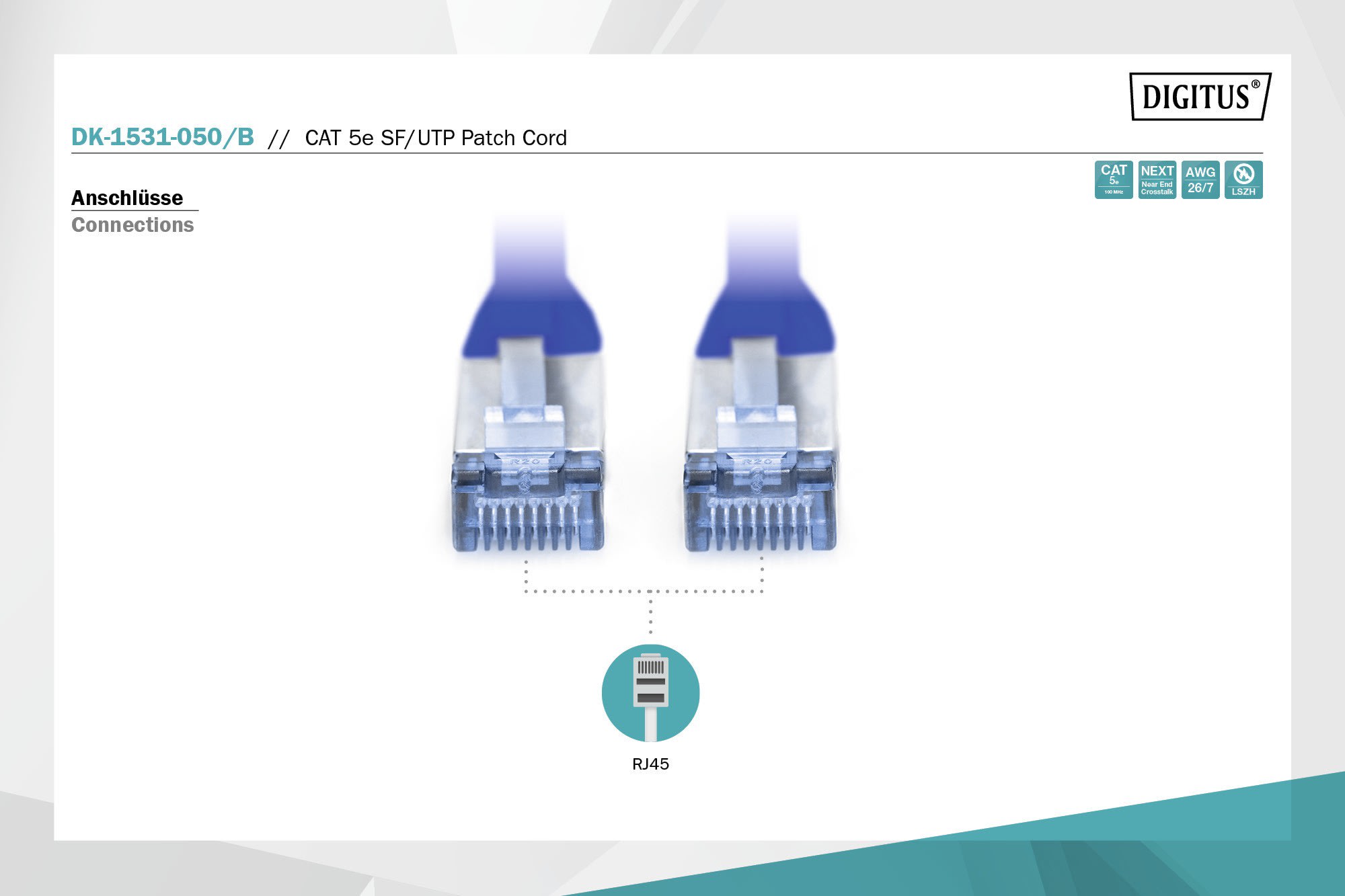 Assmann Electronic - Câble de brassage CAT5E SF-UTP, Cu, PVC AWG 26/7, longueur 5 m, couleur bleu - DK-1531-050/B