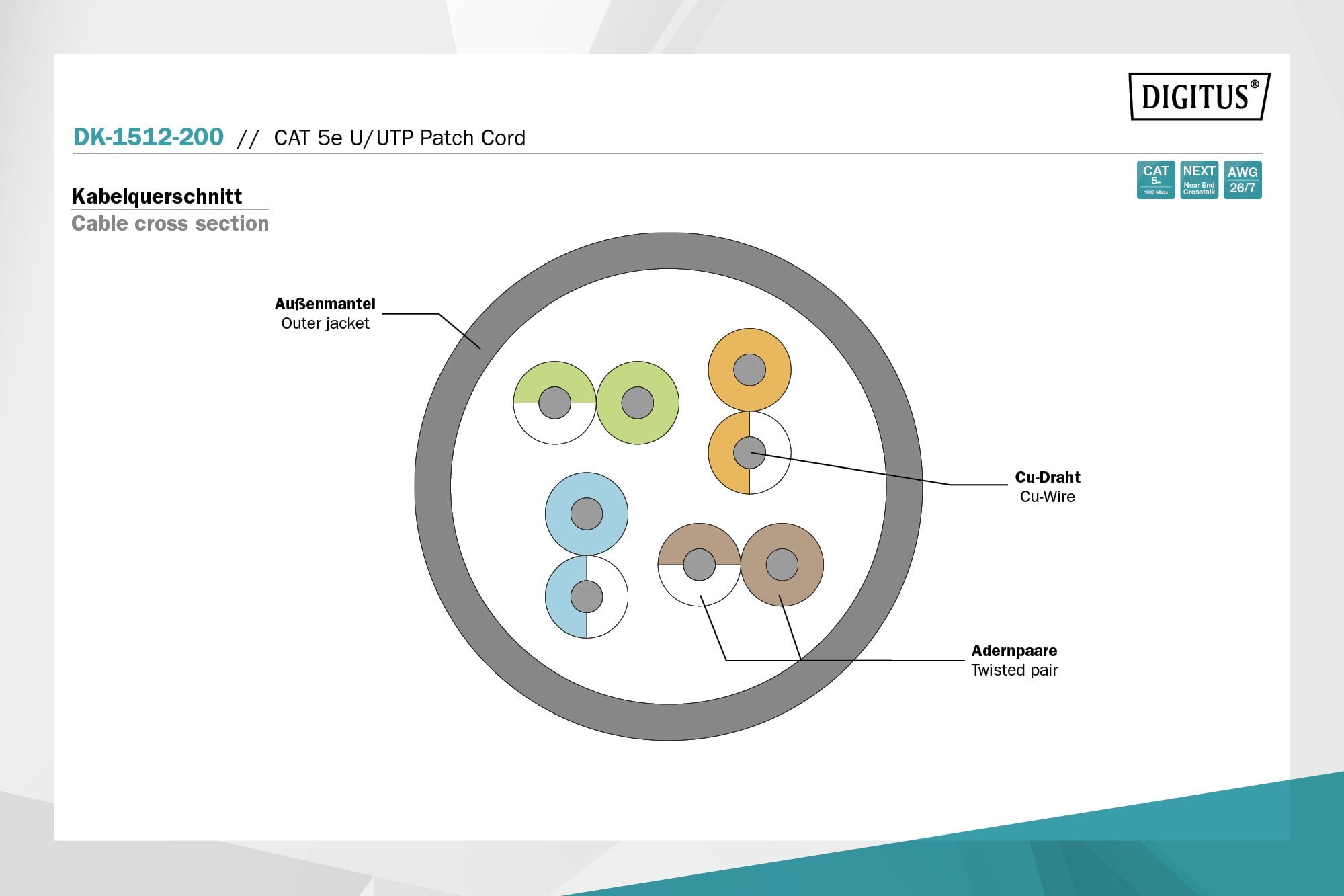 Assmann Electronic - Câble de brassage CAT5E U-UTP, PVC AWG 26/7, longueur 20 m, couleur gris - DK-1512-200