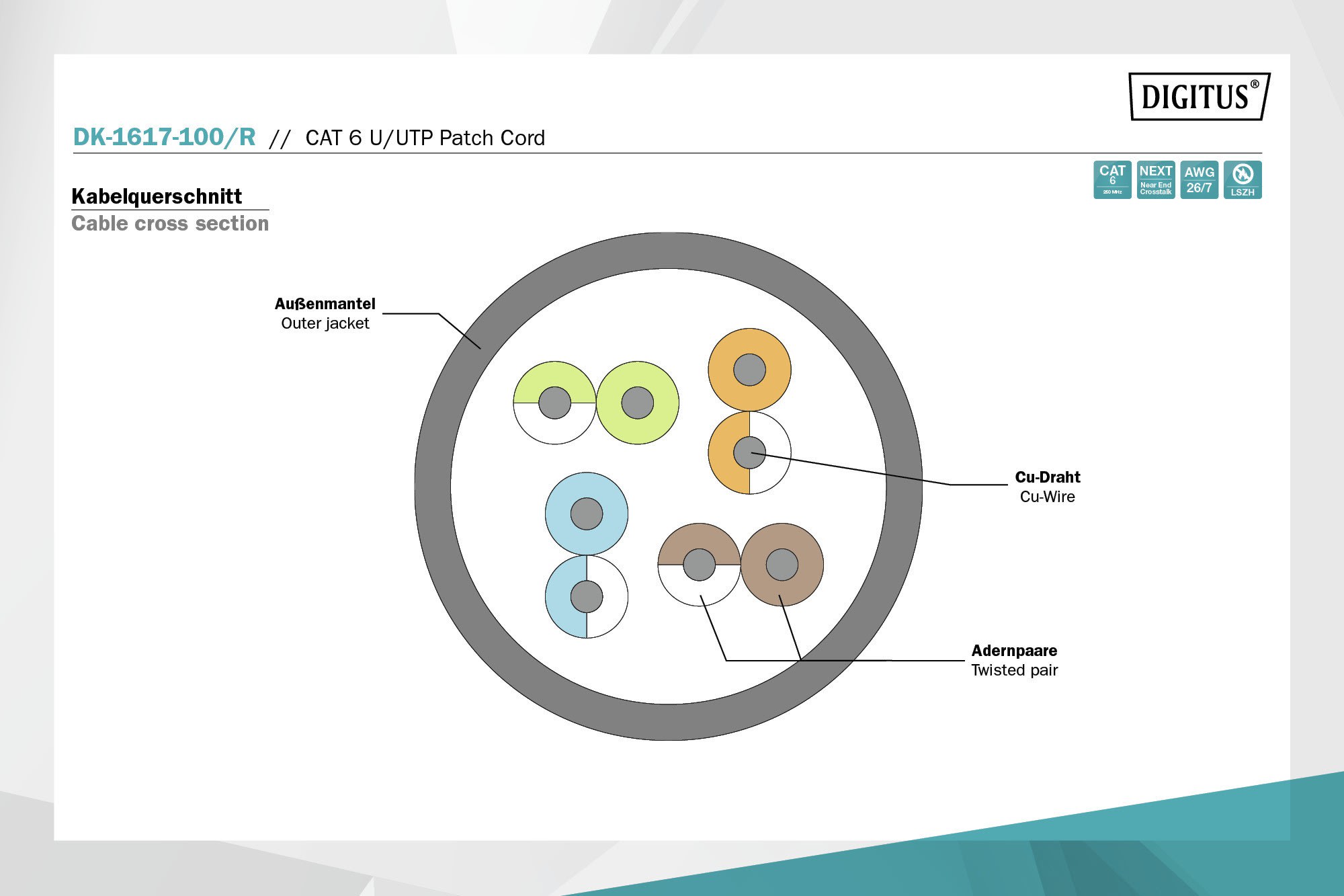 Assmann Electronic - Câble de brassage CAT6U-UTP, Cu, LSZH AWG 26/7, longueur 10 m, couleur rouge - DK-1617-100/R
