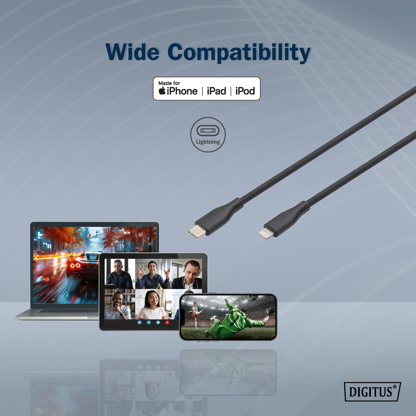 Assmann Electronic - Câble de charge USB en silicone, USB-C - Lightning 0,5m, USB 2.0, 60W, noir - AK-600110-005-S