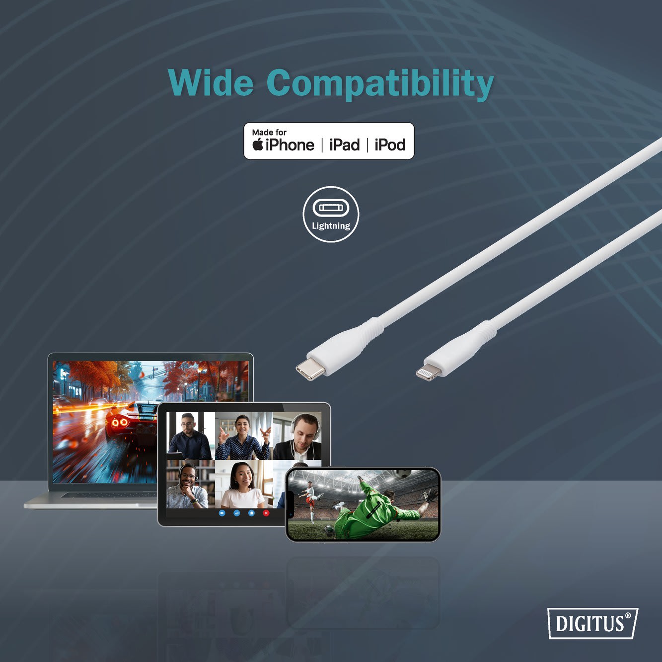 Assmann Electronic - Câble de charge USB en silicone, USB-C - Lightning 2m, USB 2.0, 60W, blanc - AK-600110-020-W