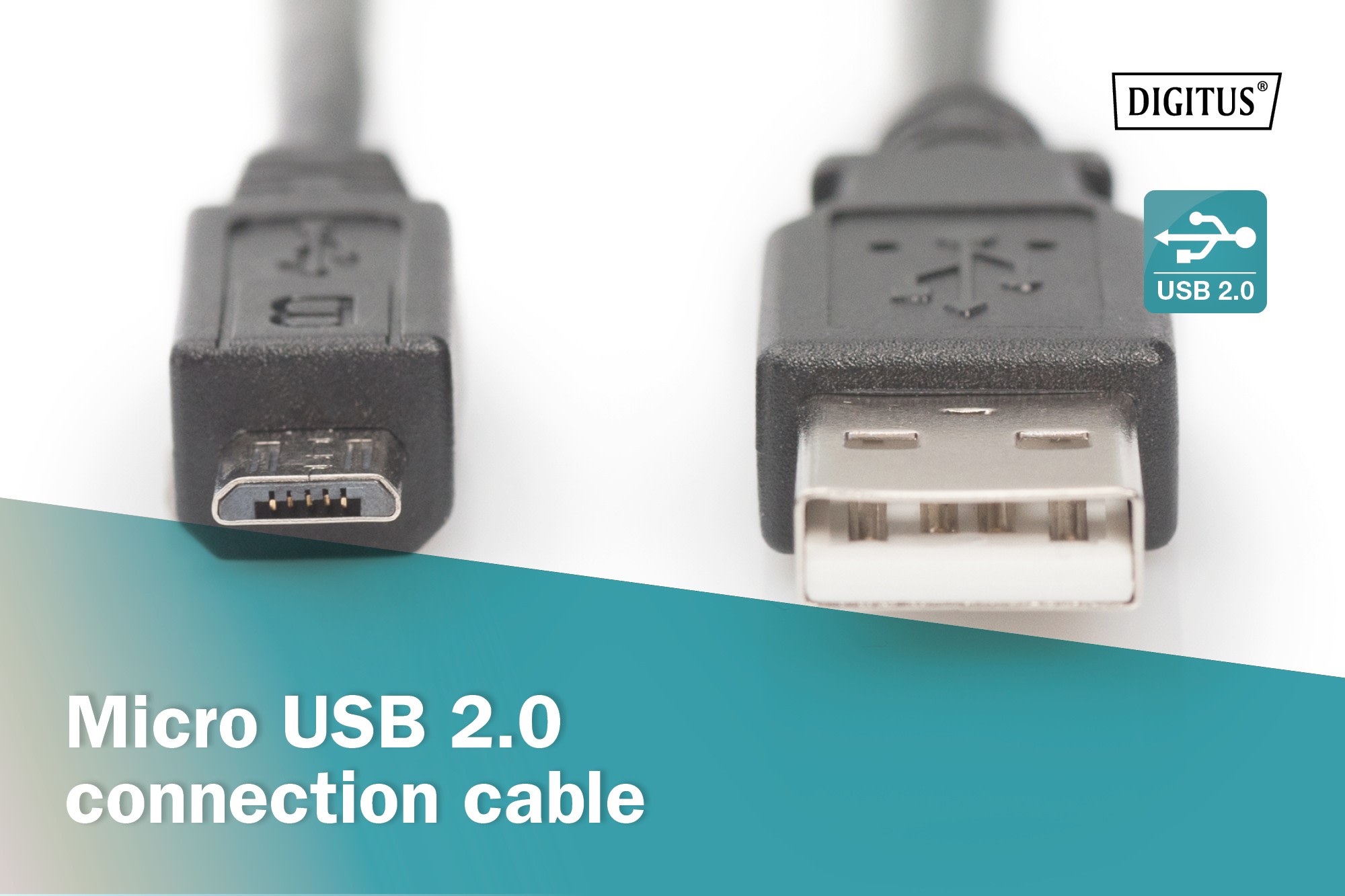 Assmann Electronic - Câble de connexion USB, type A - micro B MM, 1.0m, compatible USB 2.0, noir - AK-300127-010-S