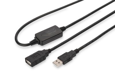 Assmann Electronic - Câble de prolongement actif USB 2.0 A/M - A/F, 10m, noir - DA-73100-1