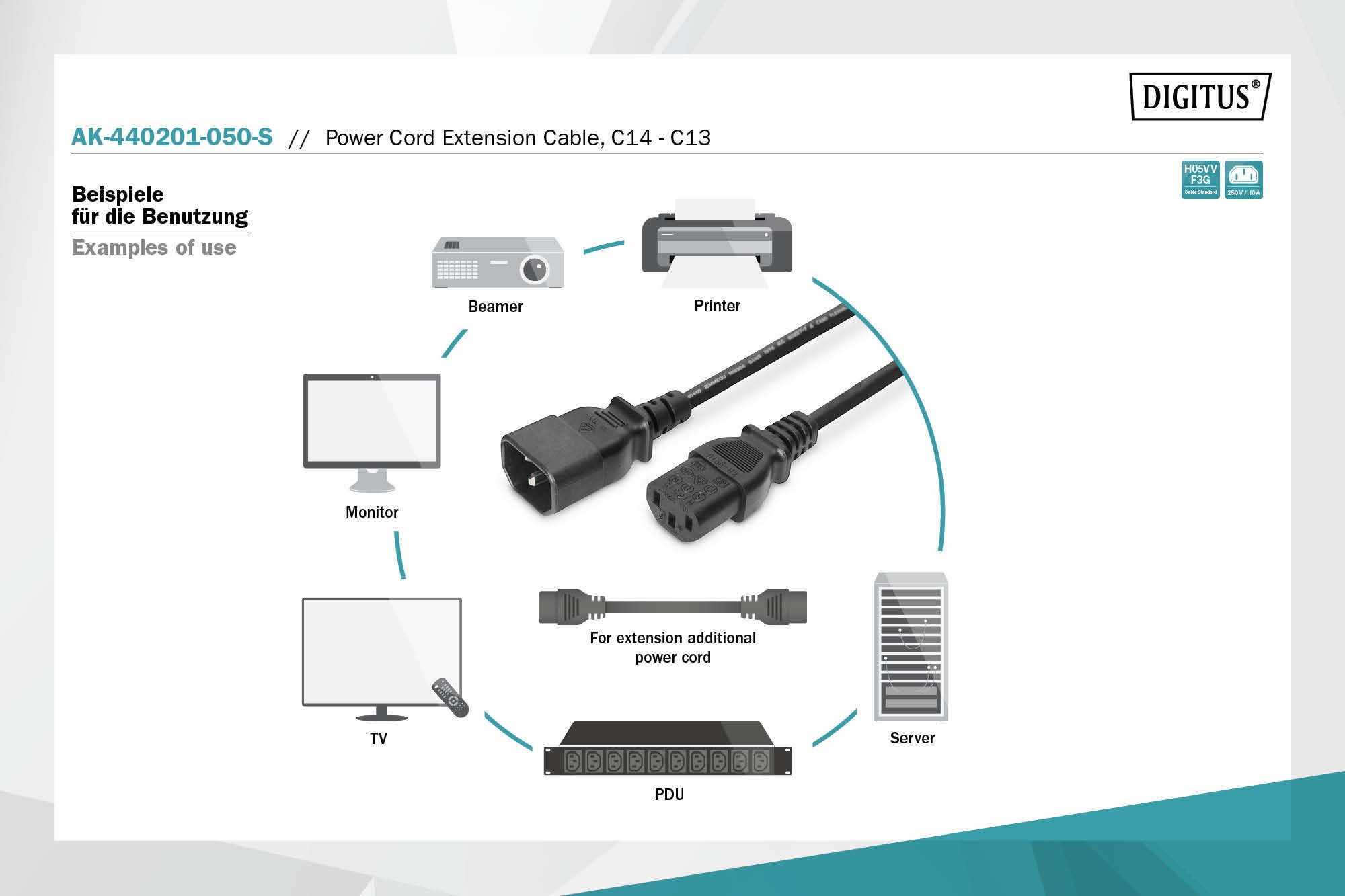Assmann Electronic - Câble d'extension secteur, C14 - C13 M/F, 5.0m, H05VV-F3G 1.0qmm, noir - AK-440201-050-S