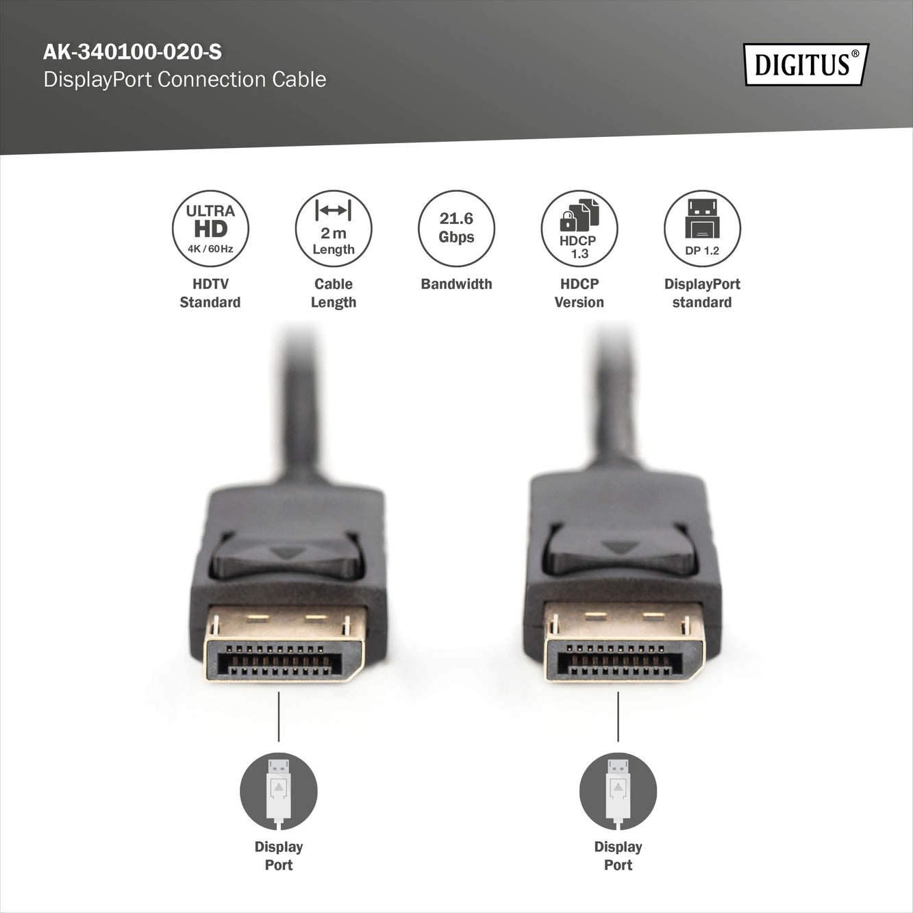 Assmann Electronic - Câble DisplayPort DP MM 2m verrouillage Ultra HD 4K noir - AK-340100-020-S