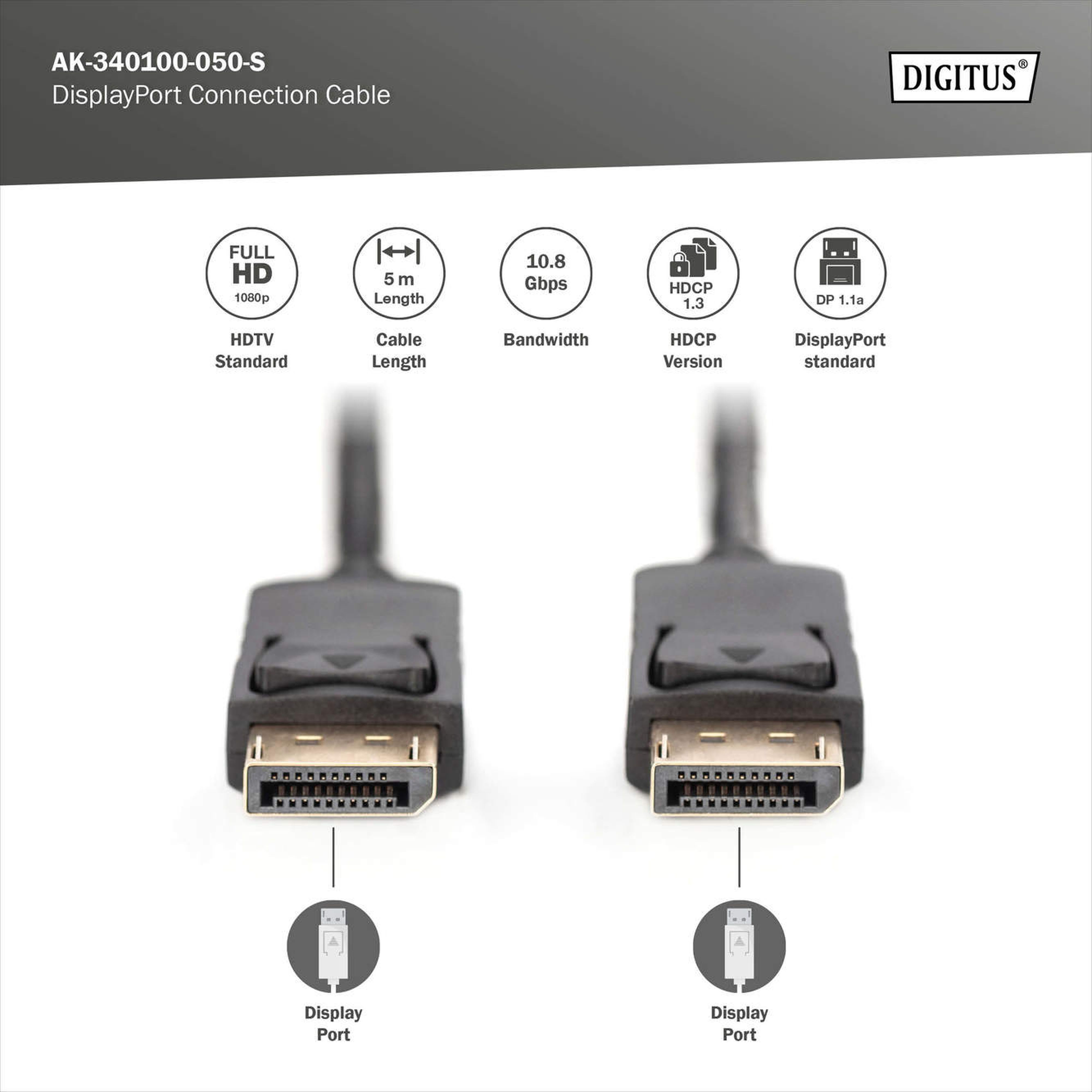 Assmann Electronic - Câble DisplayPort DP MM 5m verrouillage Full HD 1080p noir - AK-340100-050-S