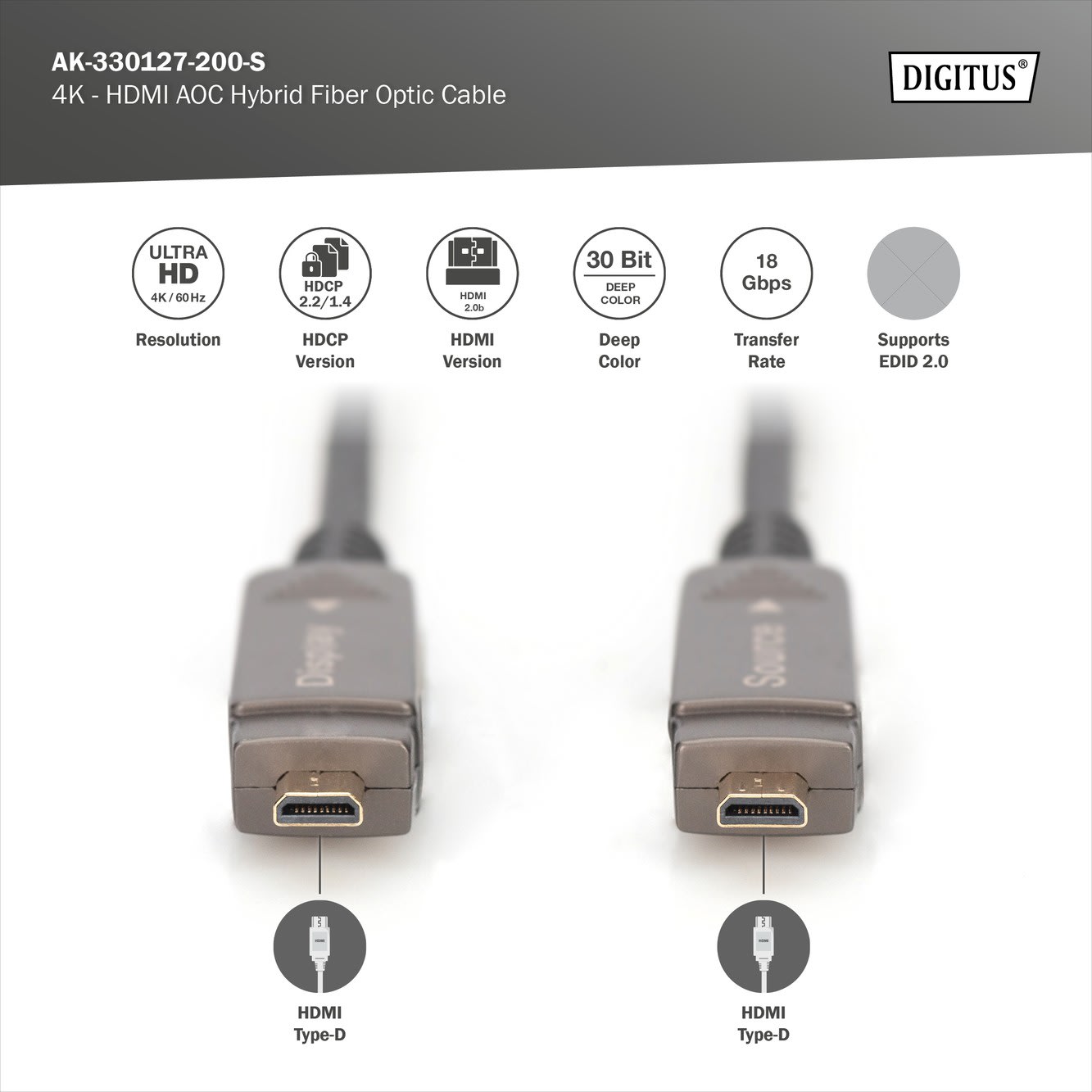 Assmann Electronic - Câble HDMI 4K AOC Connecteur amovible HDMI vers HDMI, 4K2K / 60 Hz, 20m noir - AK-330127-200-S