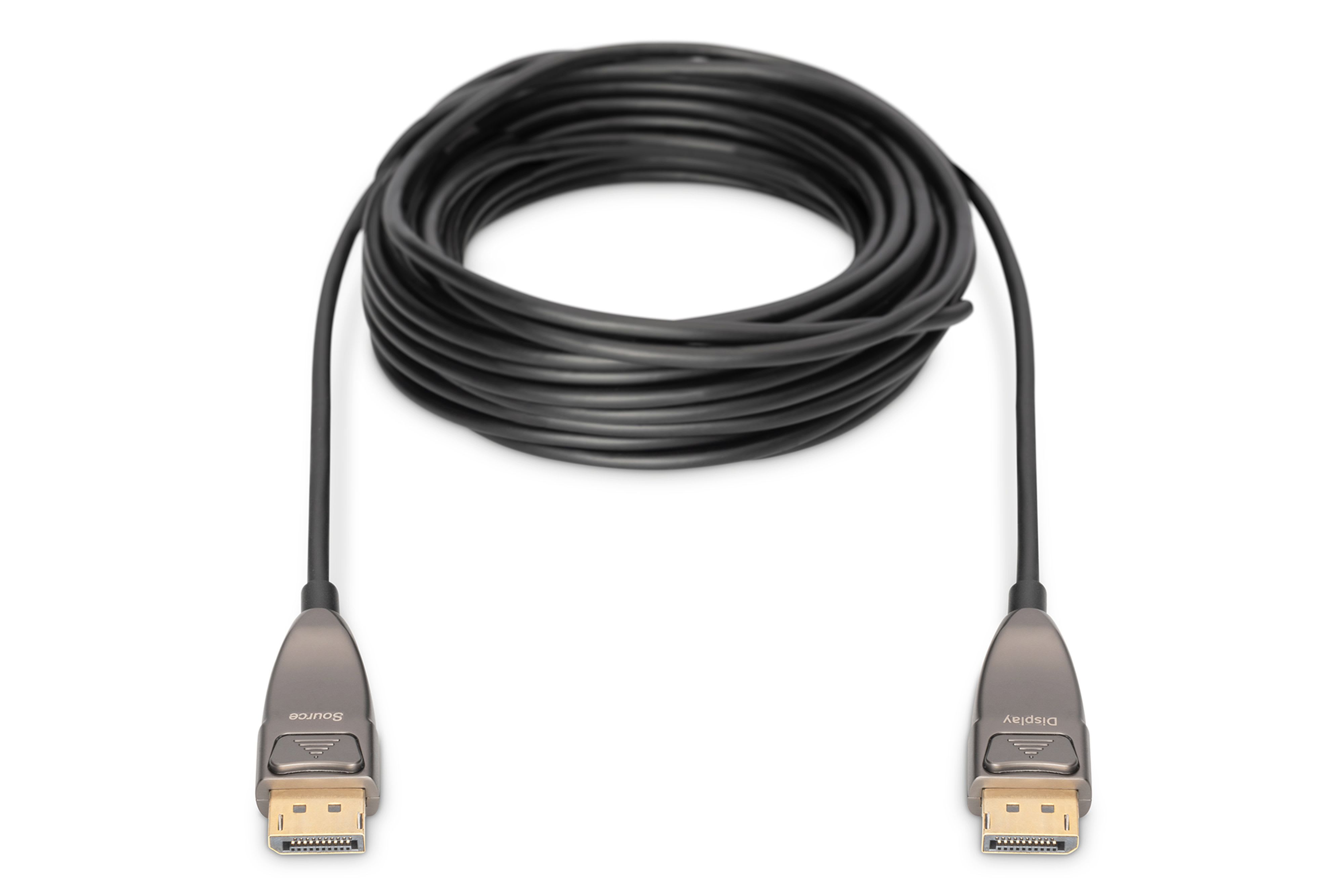 Assmann Electronic - Câble hybride fibre optique DP AOC M/M 10m UHD 8K@60Hz CE doré noir - AK-340107-100-S