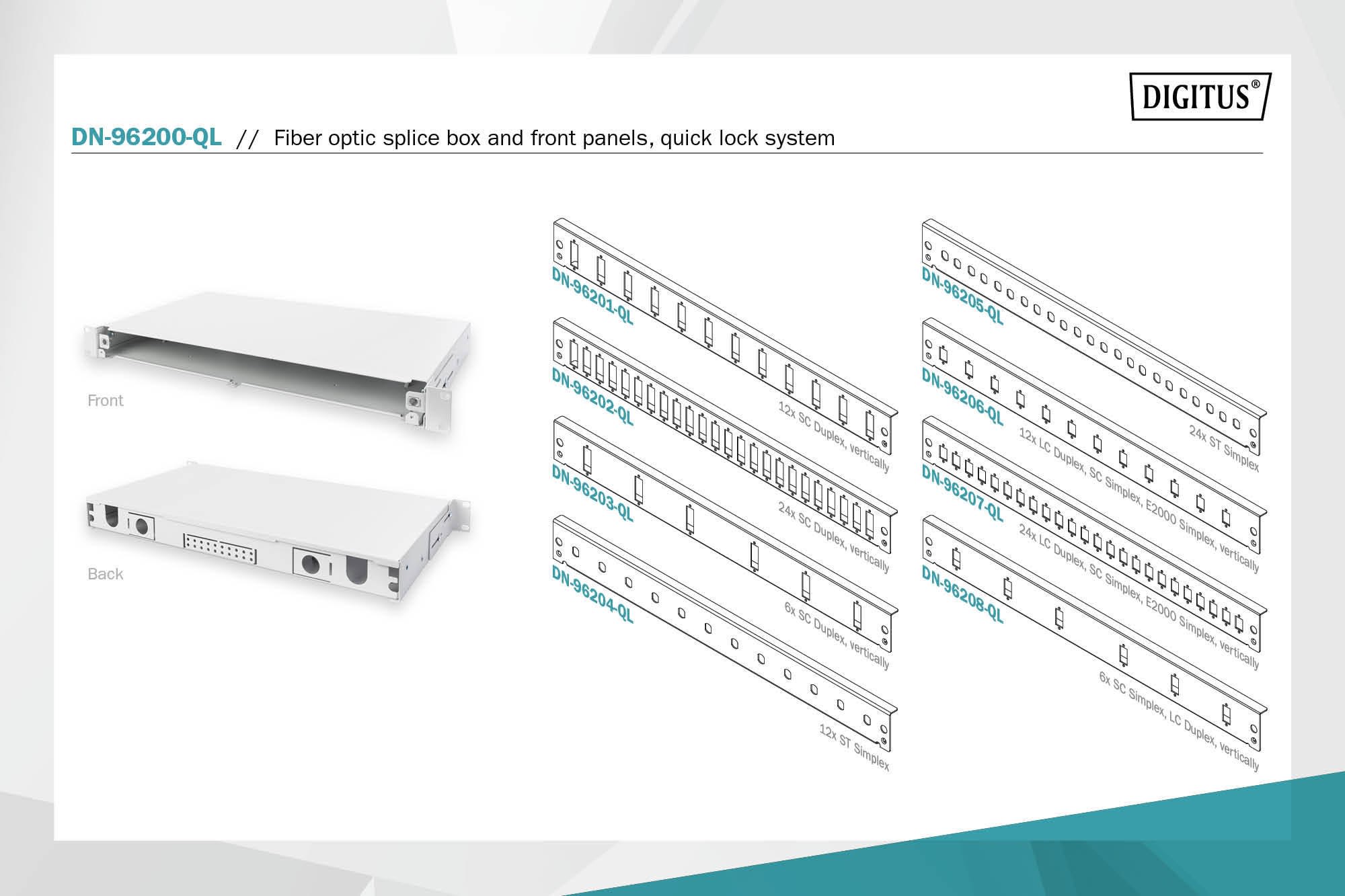 Assmann Electronic - Cache frontal FO, 1U, vide sans panneau avant, vis M20/M25 gris - DN-96200-QL