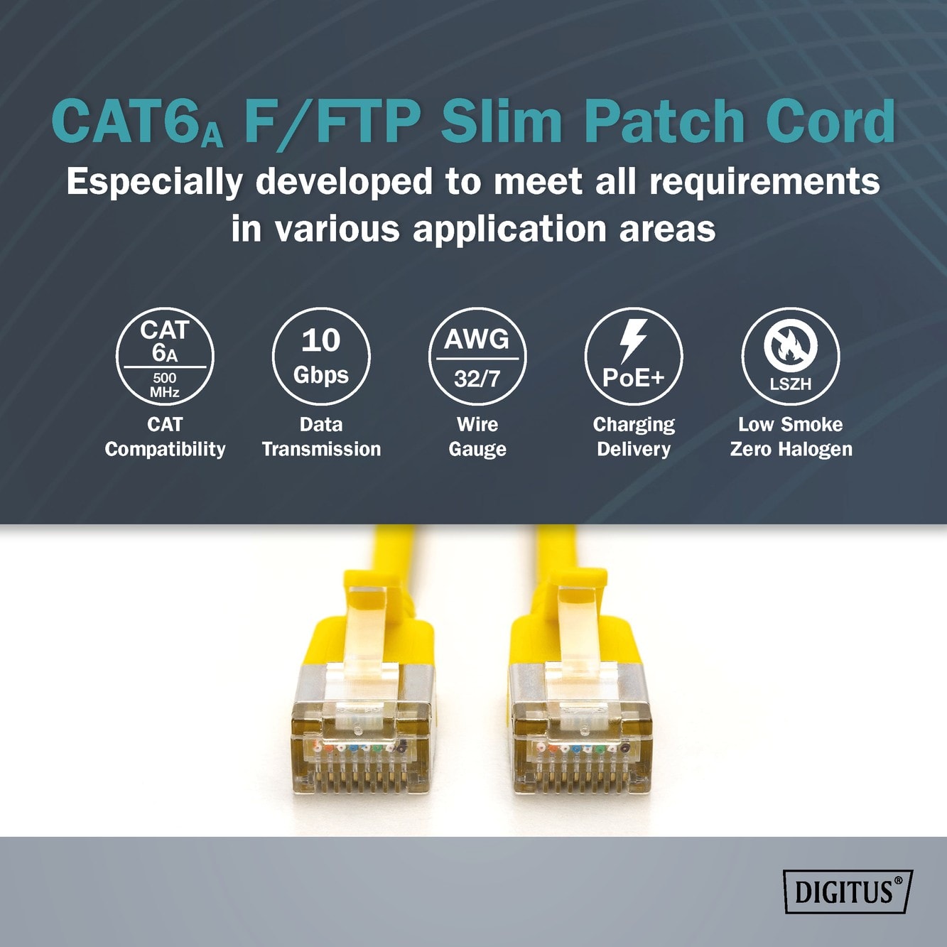 Le câble fin se distingue par son faible diamètre extérieur et sa gaine flexible. Il est fabriqué selon les normes ISO/IEC 11801 et DIN EN 50173 CAT 6A jusqu'à 500 MHz et est équipé d'un manchon anti-pliage moulé avec décharge de traction.