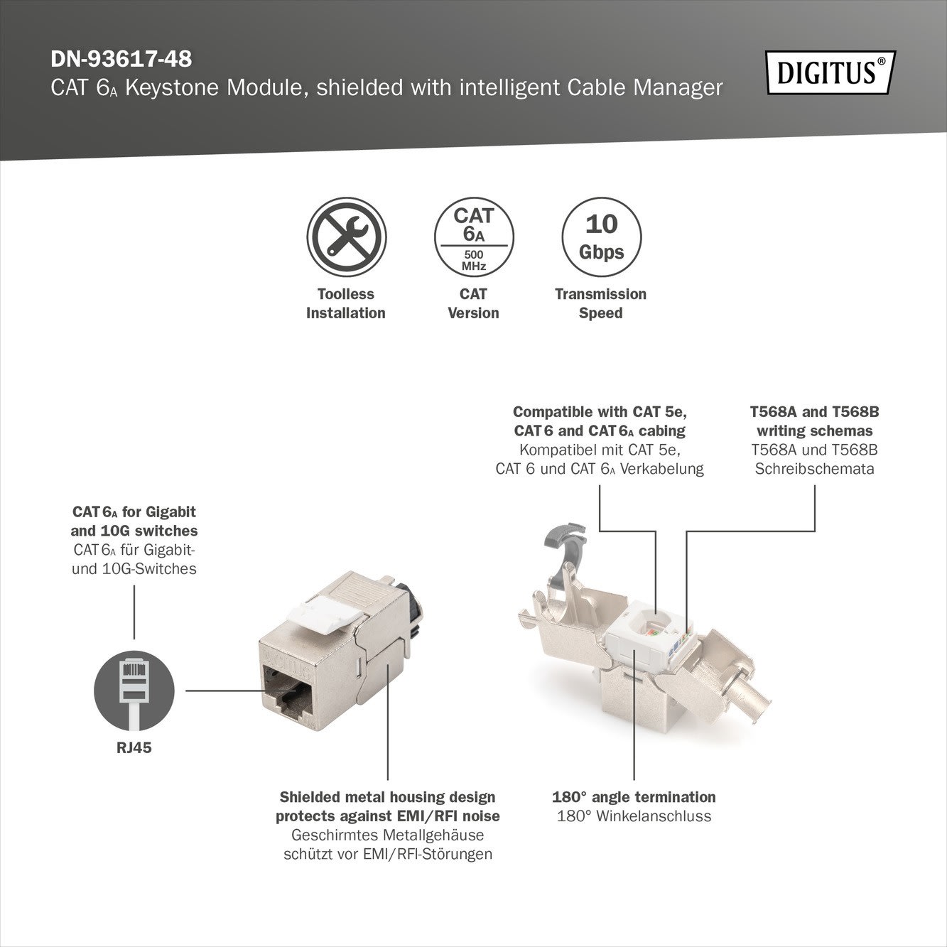 Assmann Electronic - CAT6A, module Keystone, blindé, installation sans outil X 48 - DN-93617-48