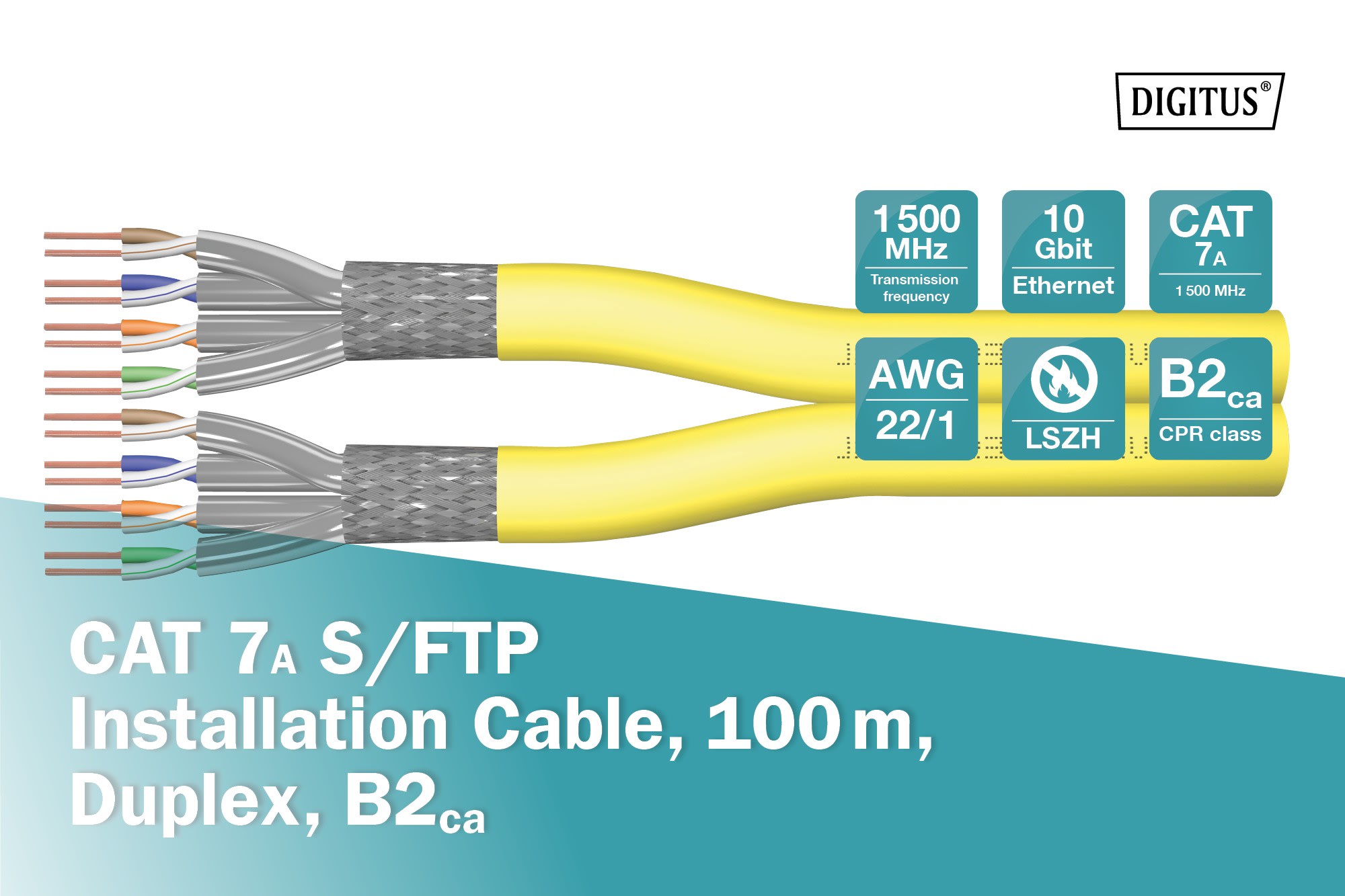 Assmann Electronic - CAT7A S-FTP, 1 500 MHz B2ca (EN 50575), AWG 22/1, bobine 500 m, Dx, jaune - DK-1745-A-VH-D-5