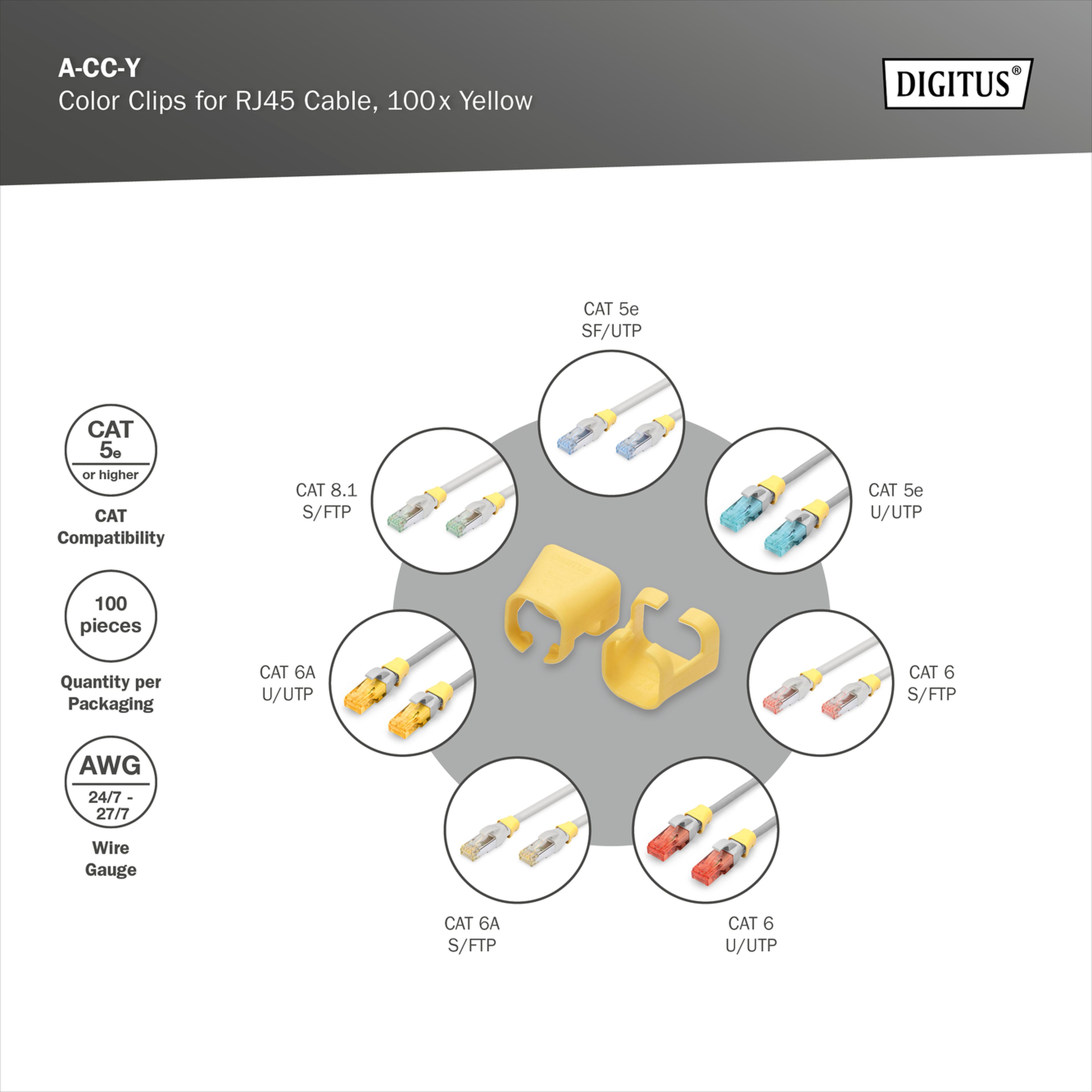 Assmann Electronic - Clips de couleur pour câbles RJ45 couleur jaune, paquet de 100 pièces - A-CC-Y