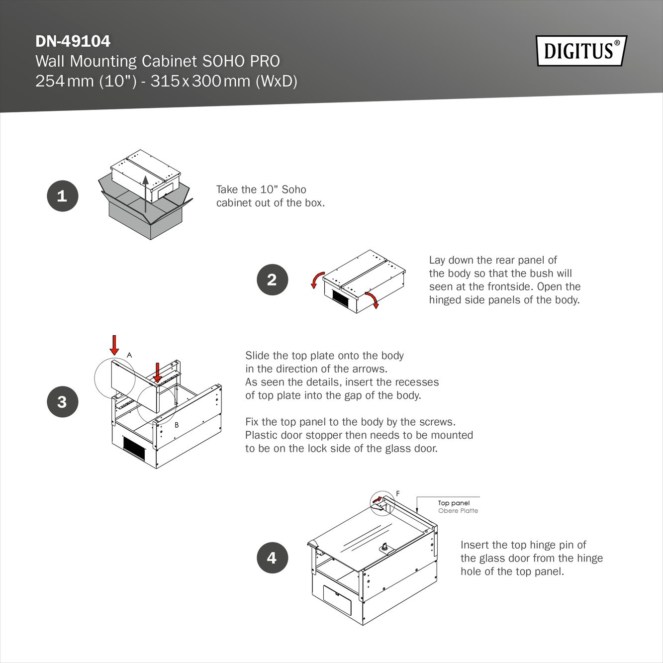 Assmann Electronic - Coffret mural 10" 12U, SOHO PRO 595 x 315 x 300 mm, gris - DN-49104