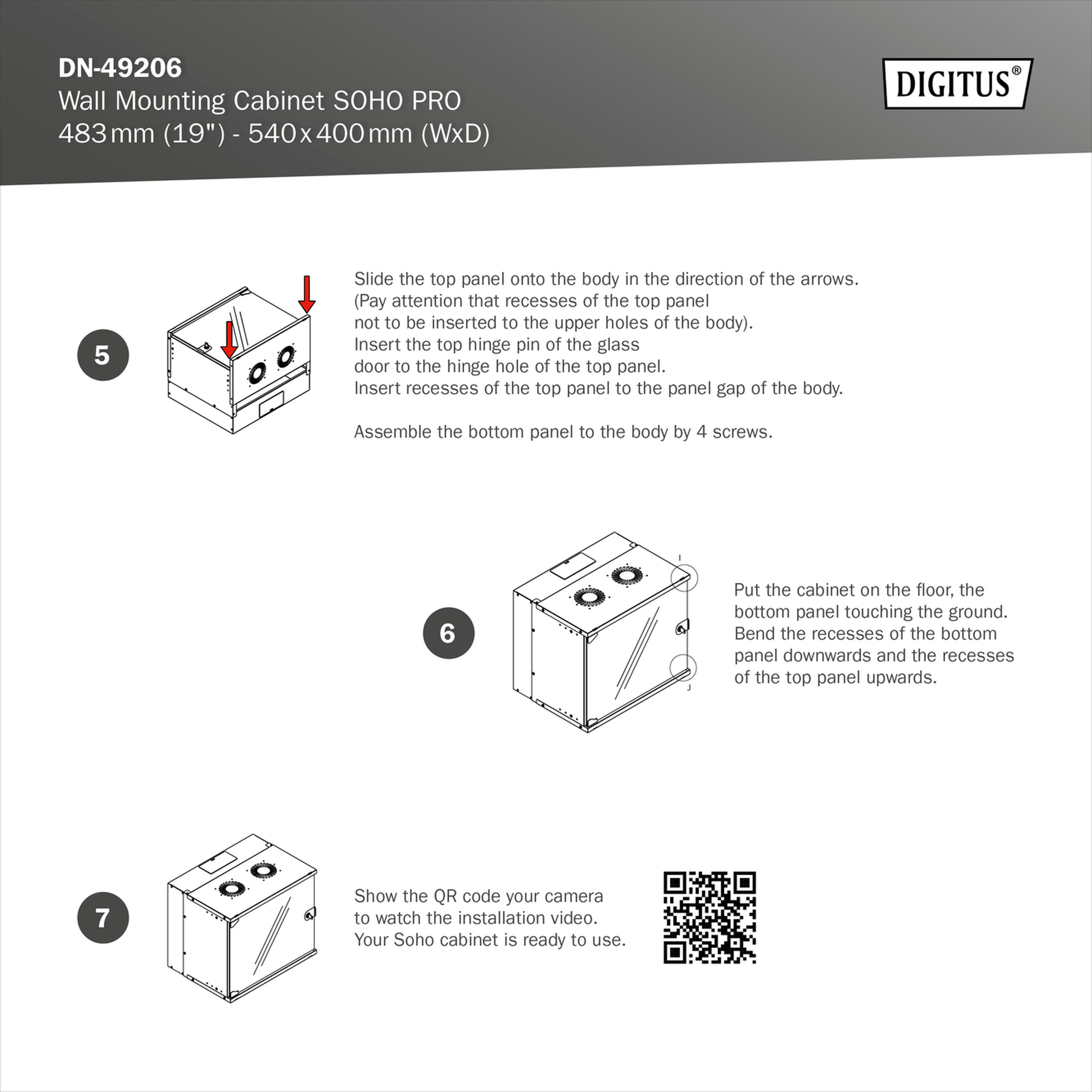 Assmann Electronic - Coffret mural 19" 12U, SOHO PRO 595 x 540 x 400 mm, gris - DN-49206