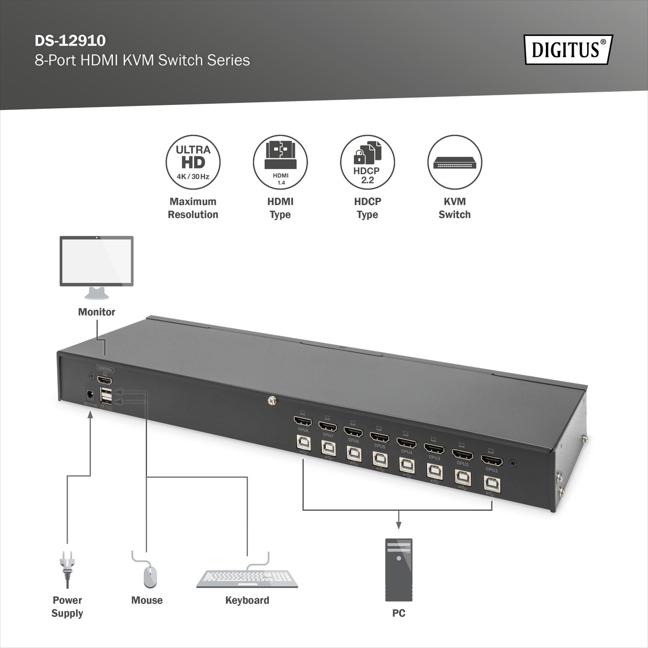 Assmann Electronic - Commutateur bureau KVM 8 ports HDMI Single View - DS-12910