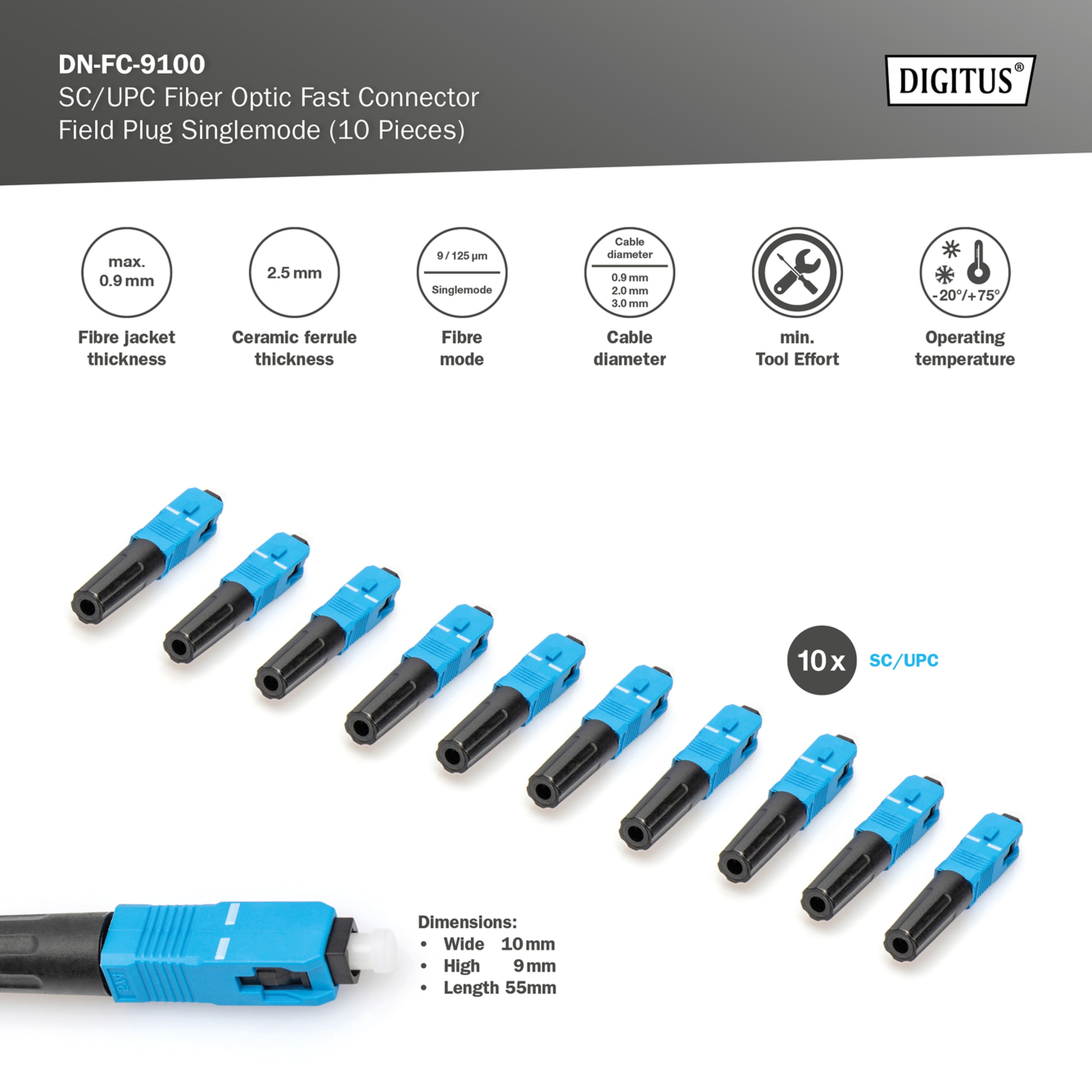 Assmann Electronic - Connecteur de terrain FO SC/UPC SM paquet de 10 pièces - DN-FC-9100