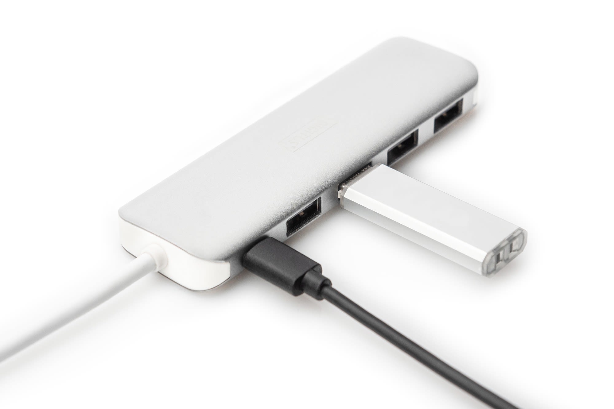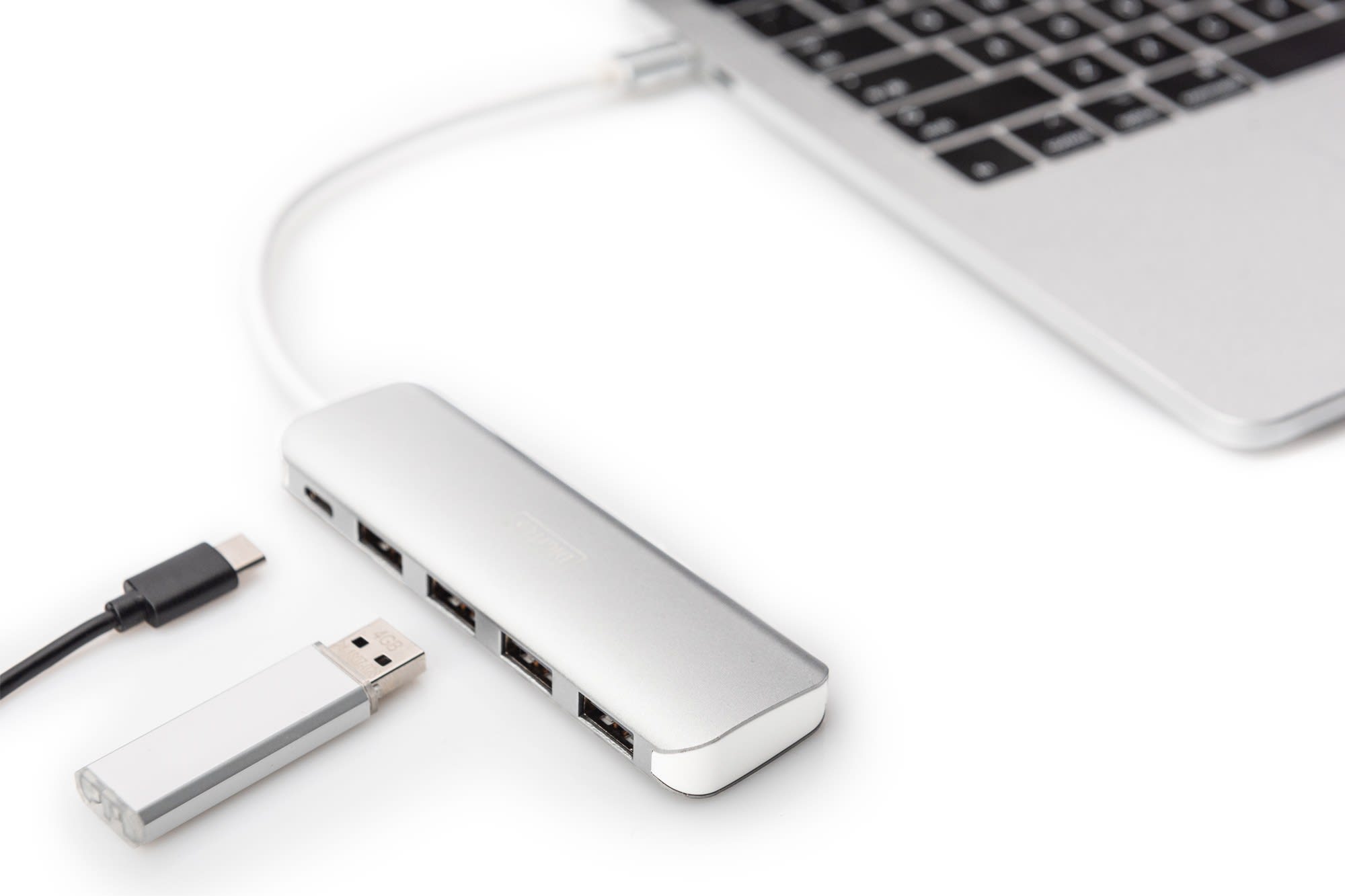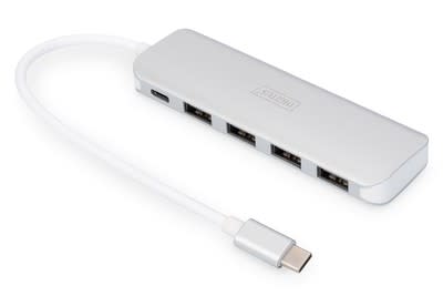 Assmann Electronic - Hub 4 ports USB-C + PD 4 ports USB 3.0, 1 PD pour le chargement, argenté - DA-70242-1