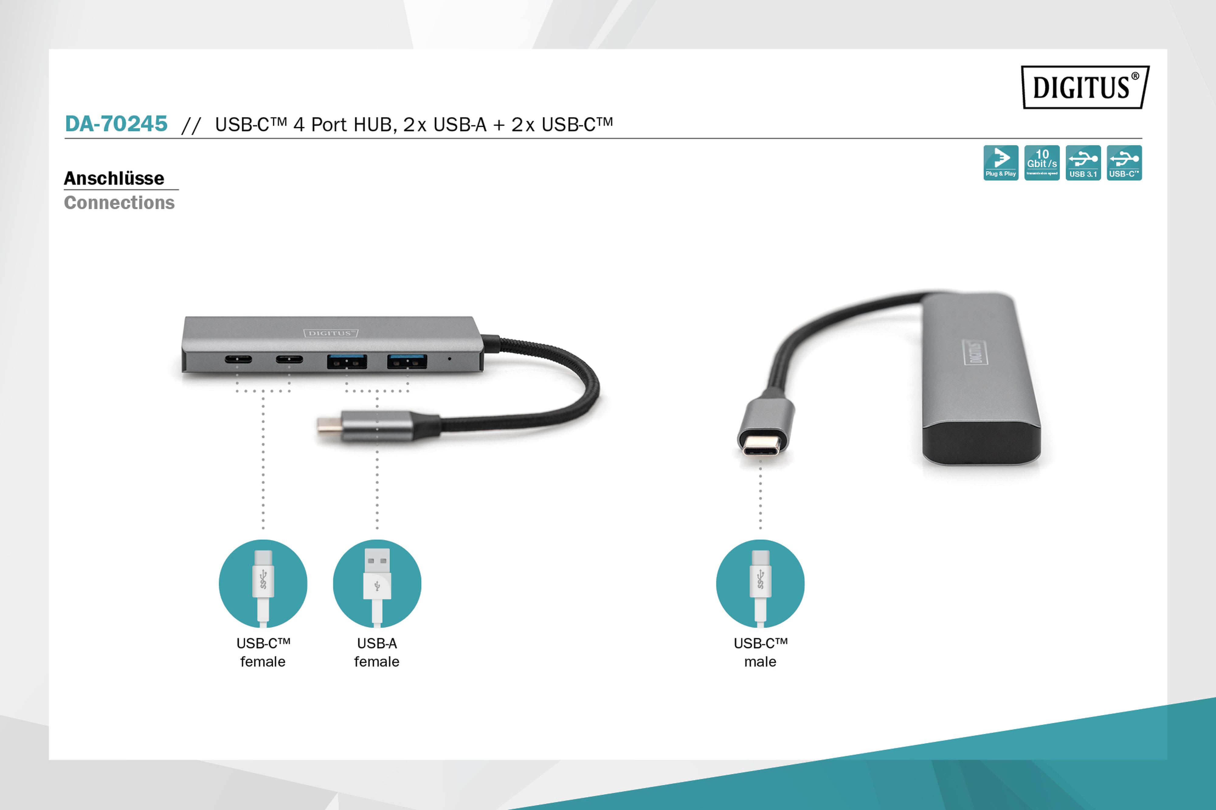 Assmann Electronic - Hub USB-C 4 ports 2 x USB A + 2 x USB-C Gen2 - DA-70245