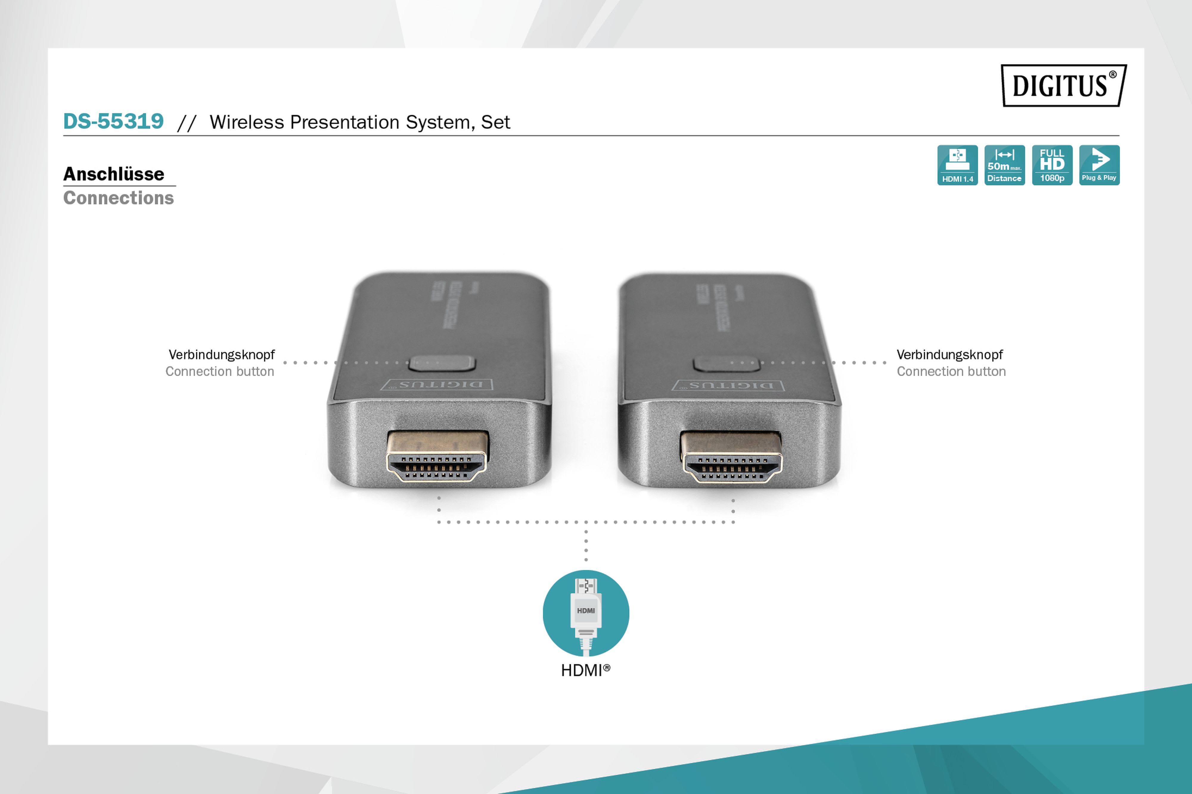 Assmann Electronic - Kit d'extension Click & Present sans fil HDMI, 50 m Dongle 16-en-1, Full HD - DS-55319