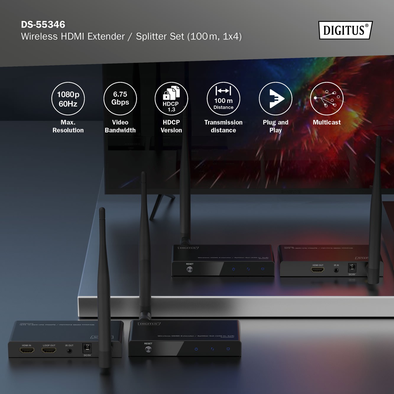 Assmann Electronic - Kit d'extension / répartition sans fil HDMI 1x4 100m Full HD - DS-55346
