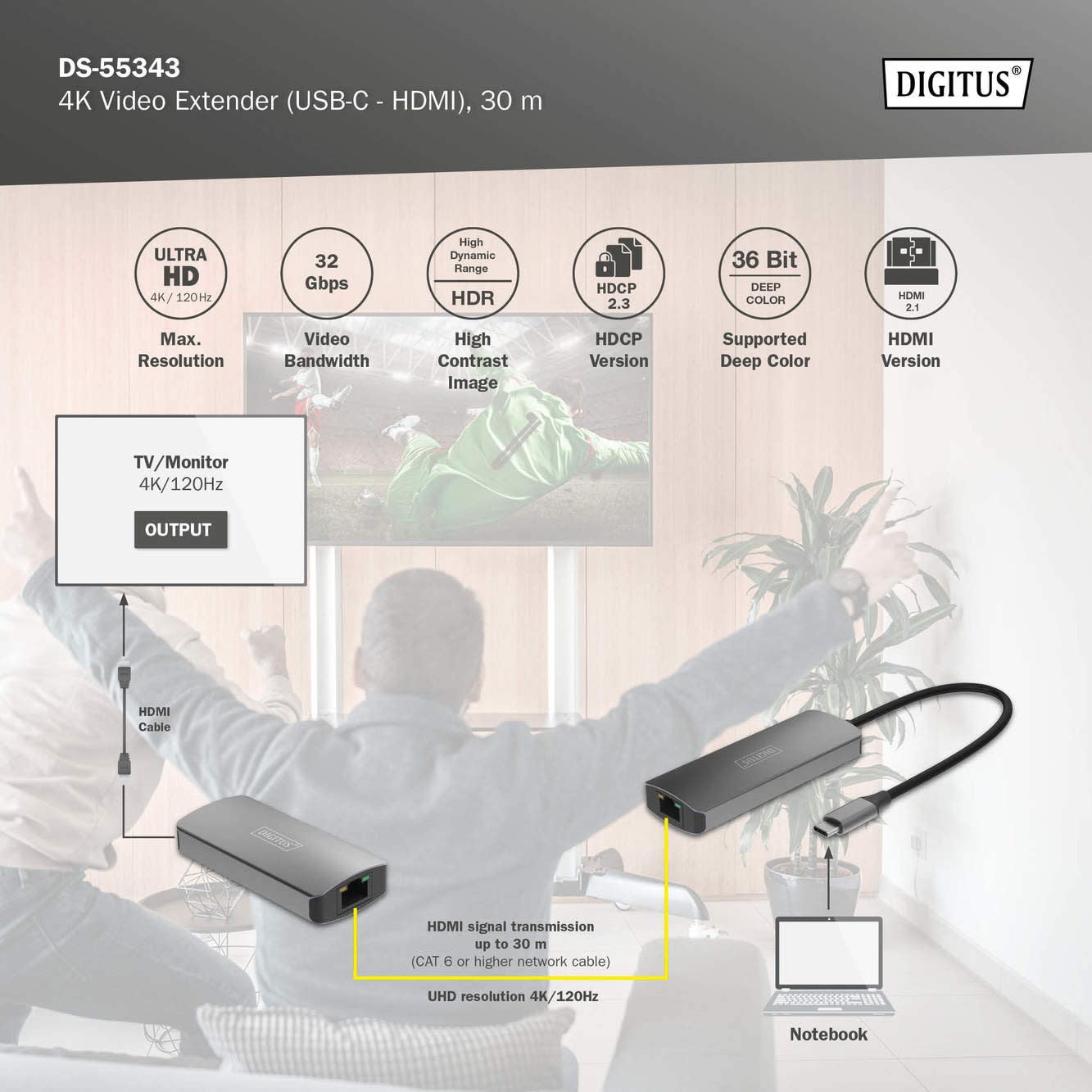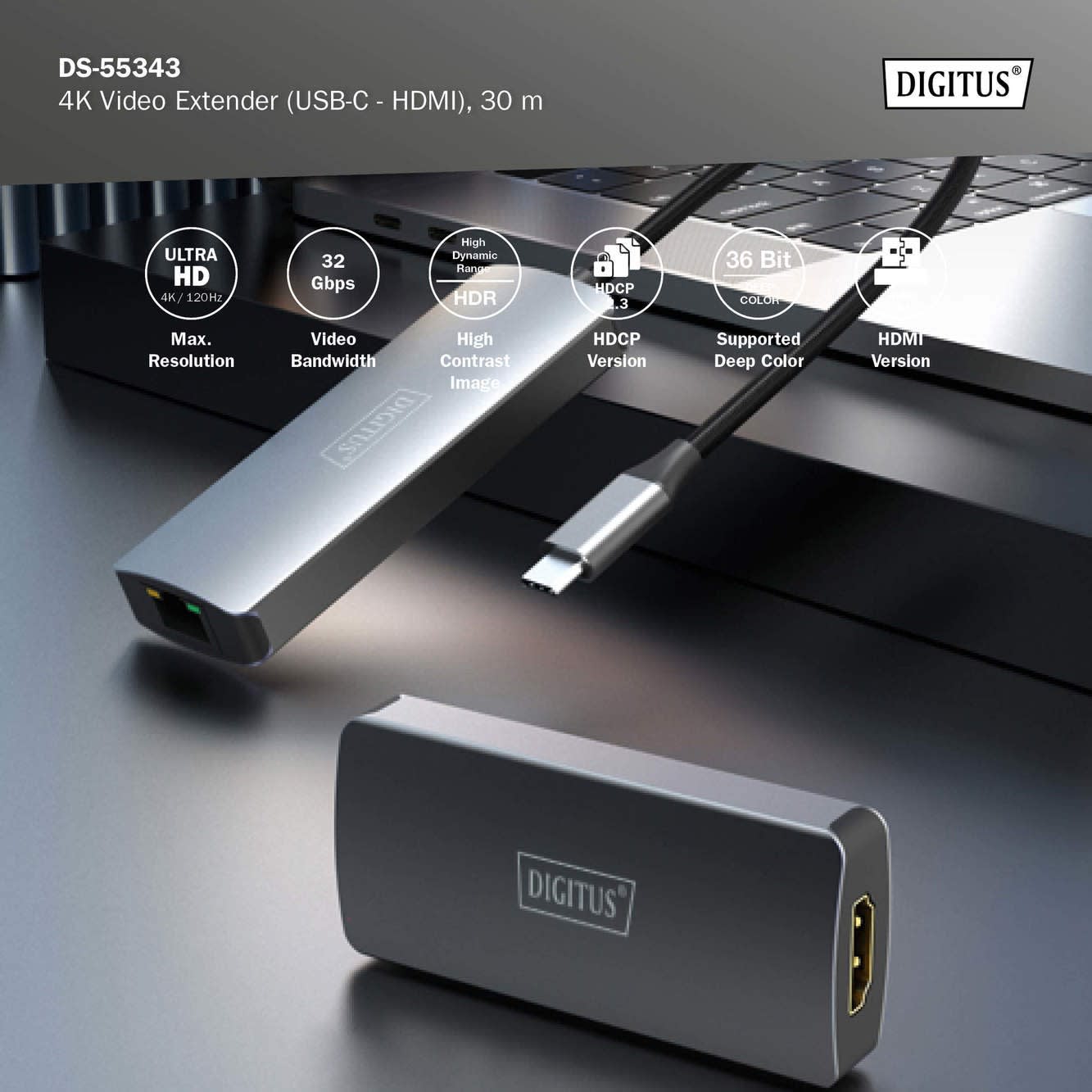 Assmann Electronic - Kit d'extension vidéo USB-C ? HDMI 4K/120Hz Cat6 30 m - DS-55343