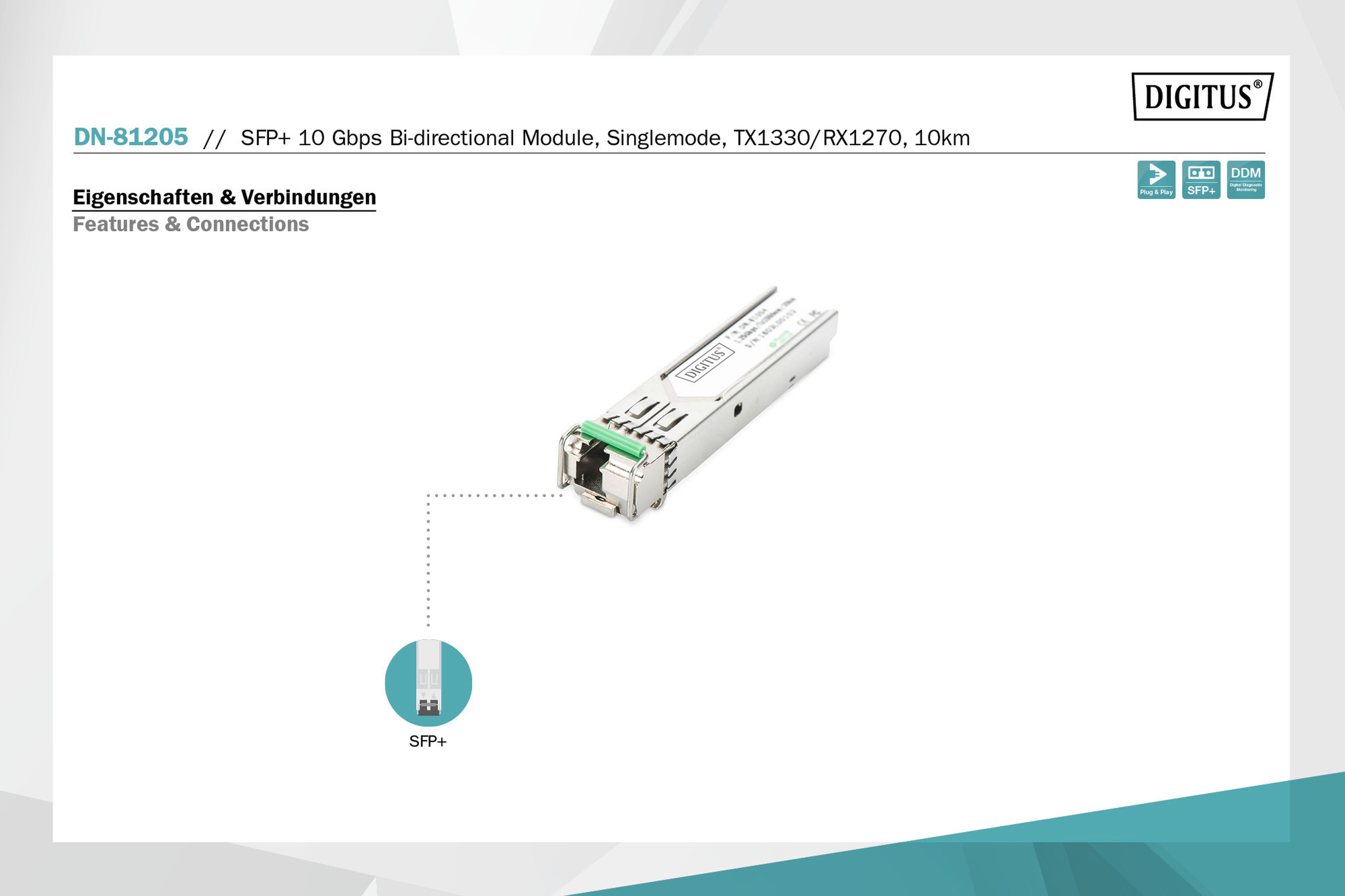 Assmann Electronic - Module 10G SFP+, monomode, BiDi, DDM Connecteur LC Simplex, Tx1330/Rx1270 10 km - DN-81205