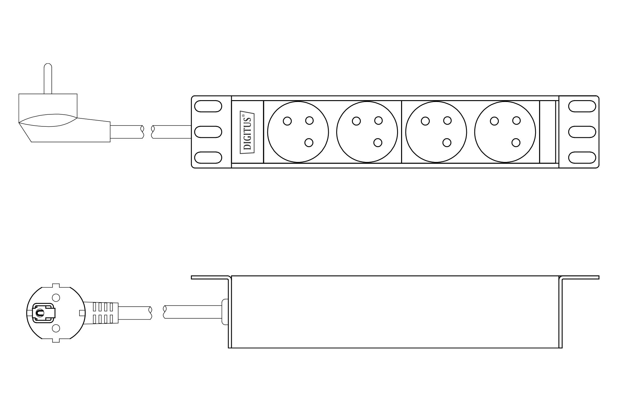 Assmann Electronic - Multiprise X4 CEE 7/5, 16A, 4 000 W, 250 VCA, 50/60 Hz, boîtier 10" 1U 2m - DN-95418-FR