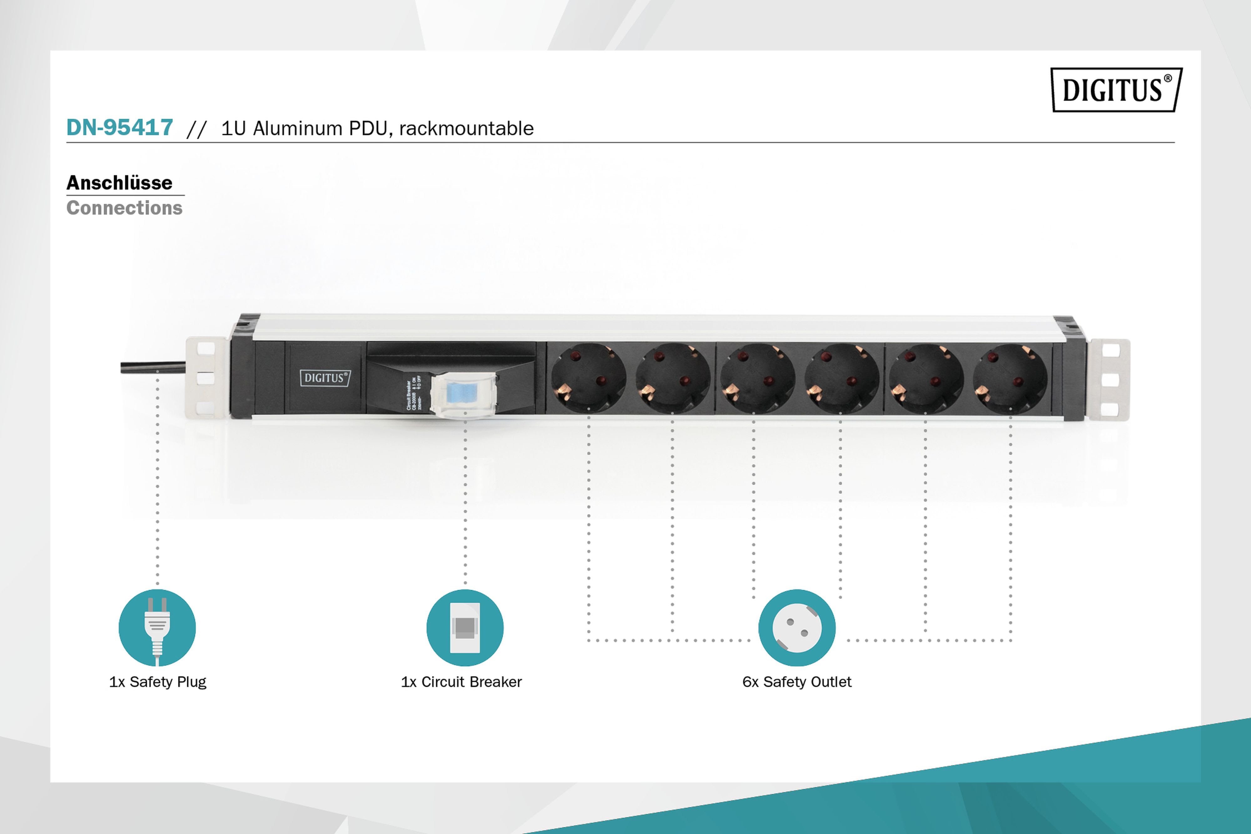 Assmann Electronic - Multiprise X6 CEE 7/7, 16A, 4000W, 250VAC 50/60Hz, disjoncteur, 2m - DN-95417