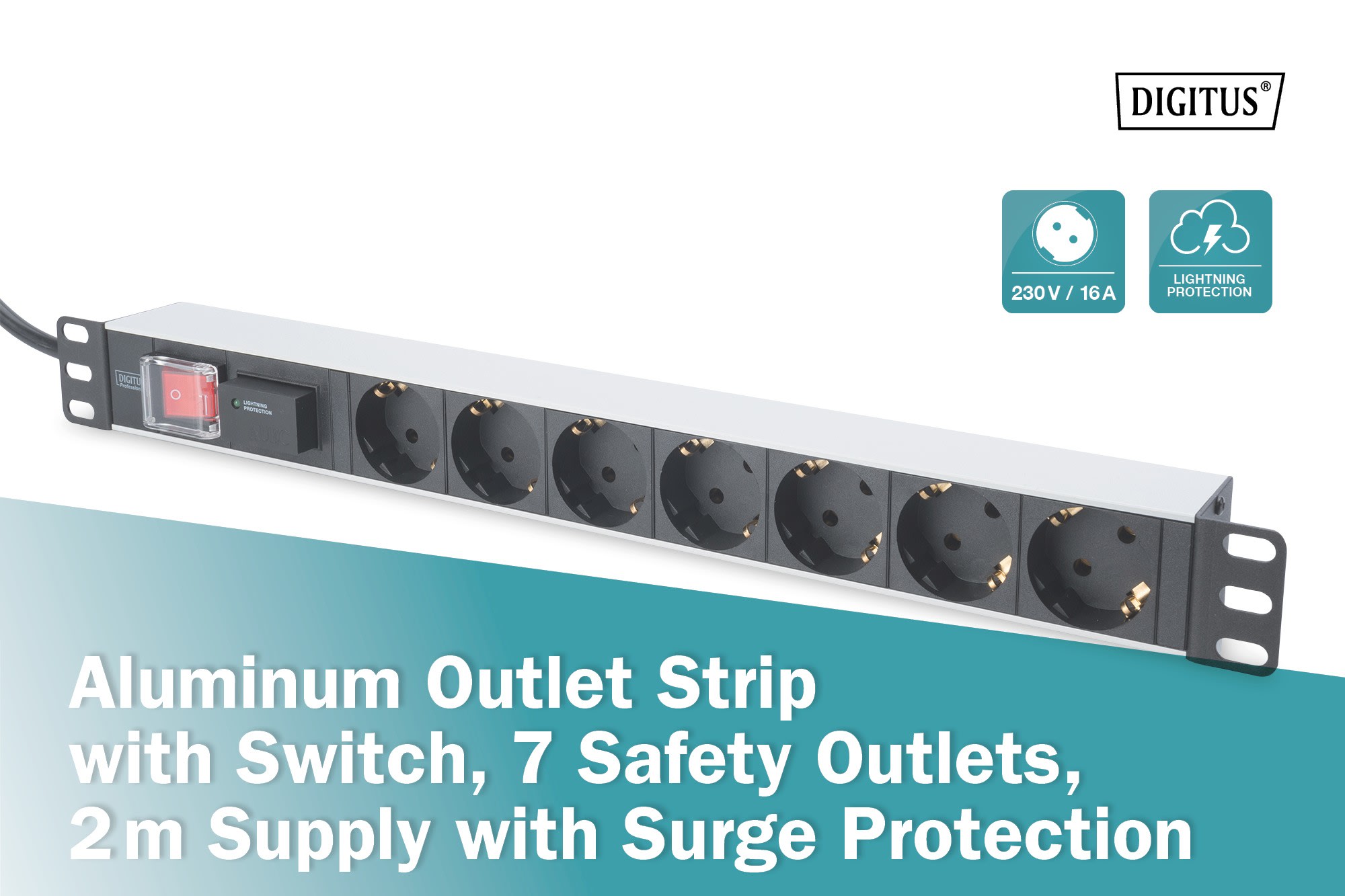 Assmann Electronic - Multiprise X7, 1U interrupteur, alumninium, 7x 16A, 250VAC 50/60Hz - DN-95407