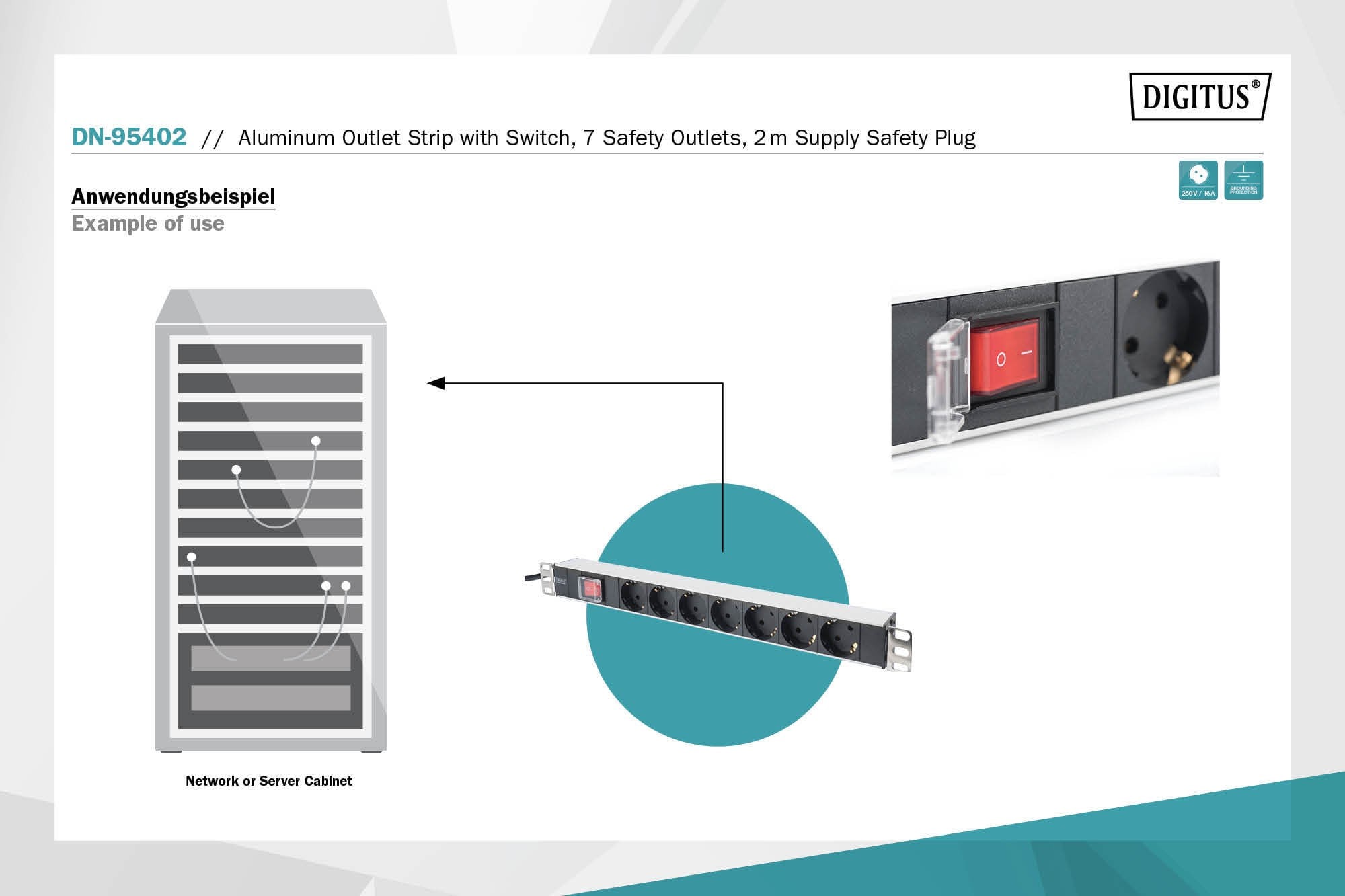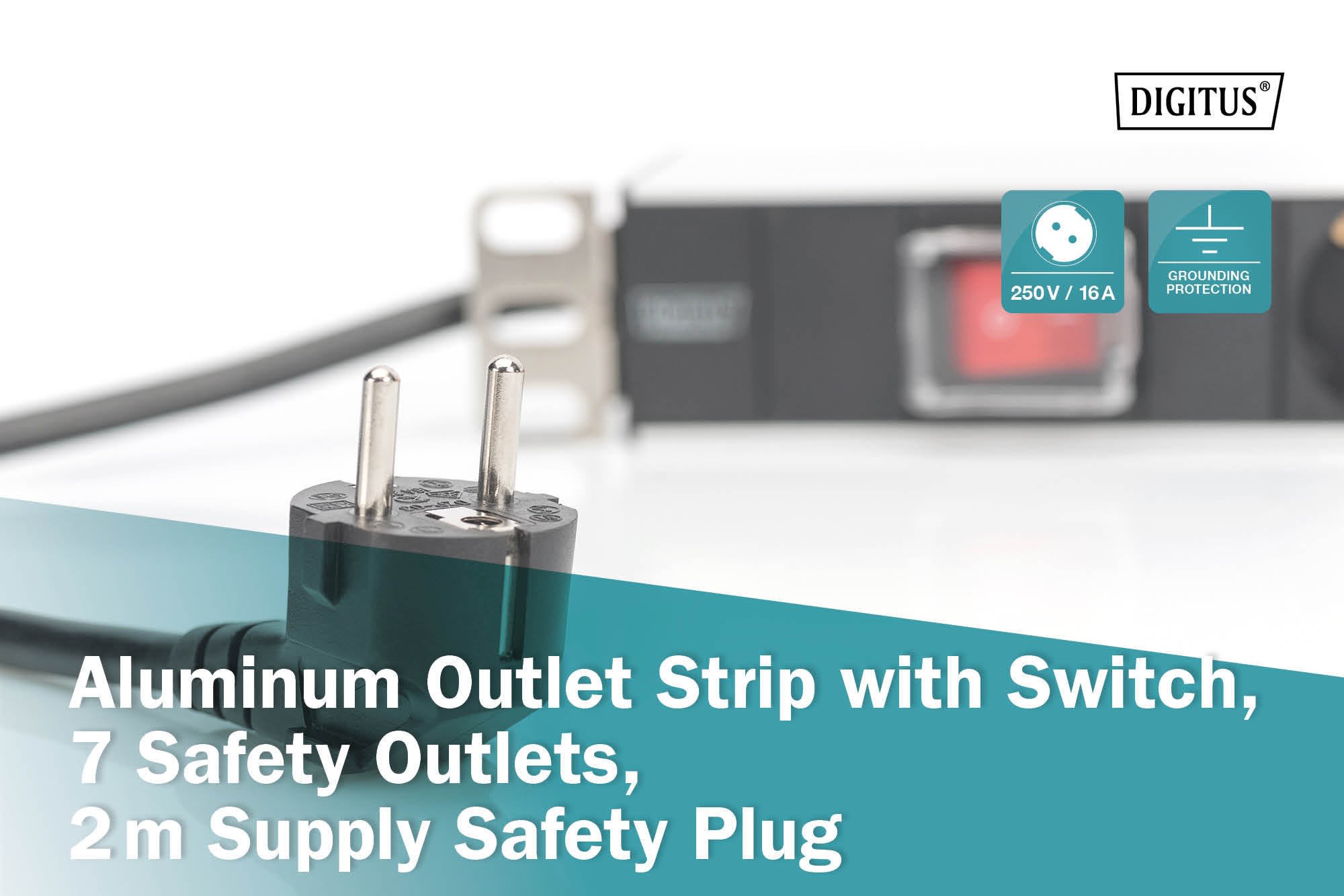 Assmann Electronic - Multiprise X7, 1U interrupteur, alumninium, 7x 16A, 4000W, 250VAC 50/60Hz - DN-95402
