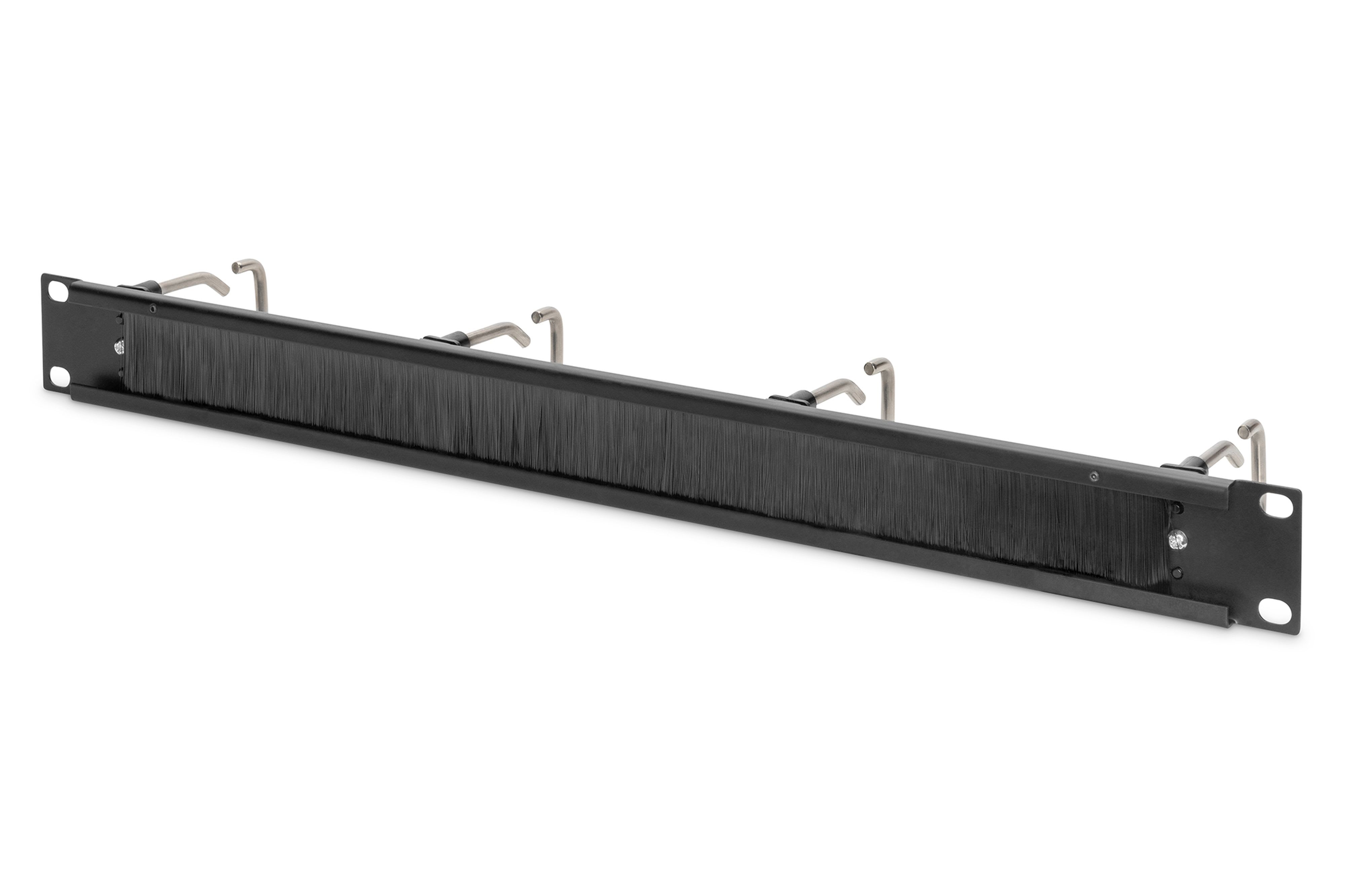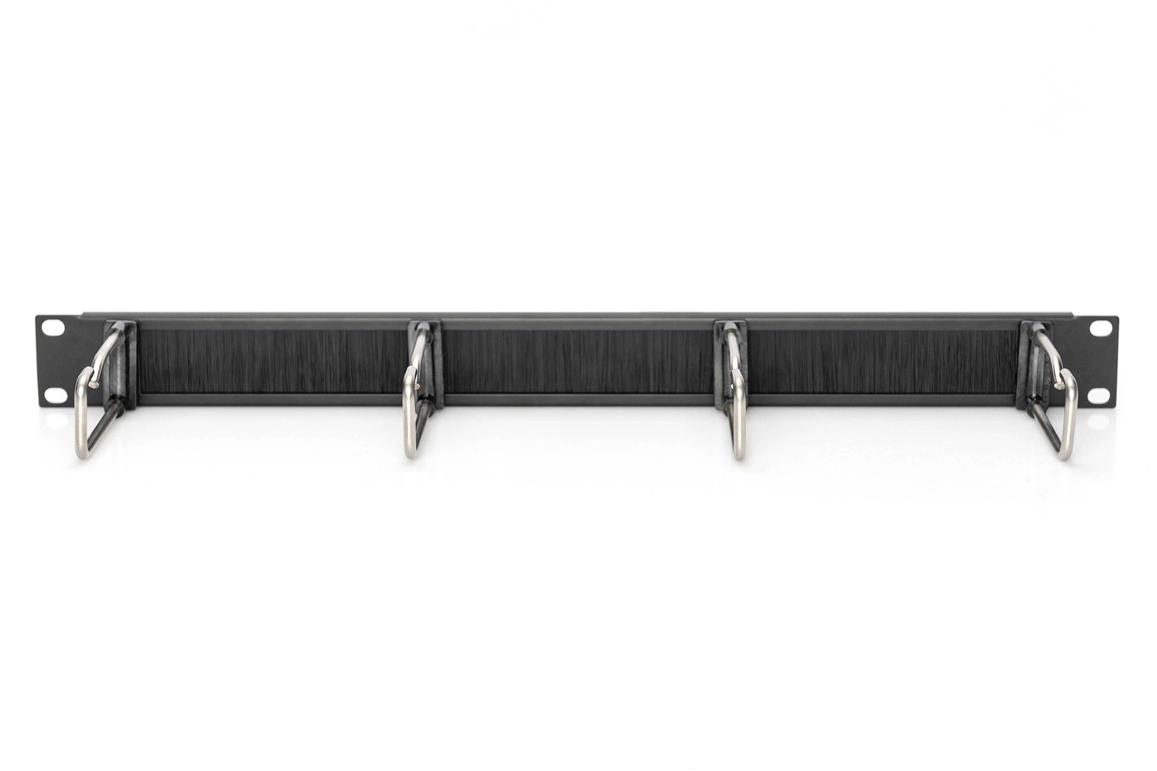 Assmann Electronic - Panneau 1U avec passe-câble à brosse 4xanneaux en acier 40x75 mm noir - DN-97669
