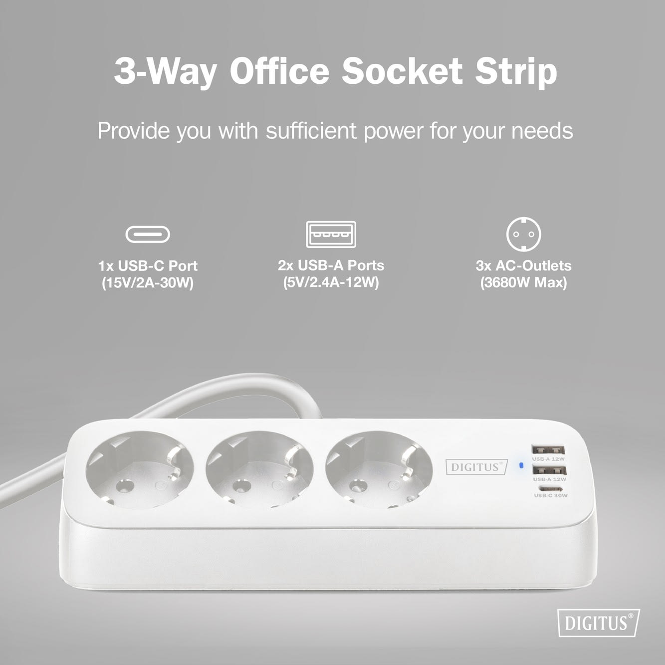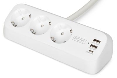 Assmann Electronic - Prise de bureau 3 voies, blanc 3xprises 2xUSB-A 1xUSB-C 3680W 12W - DA-70626