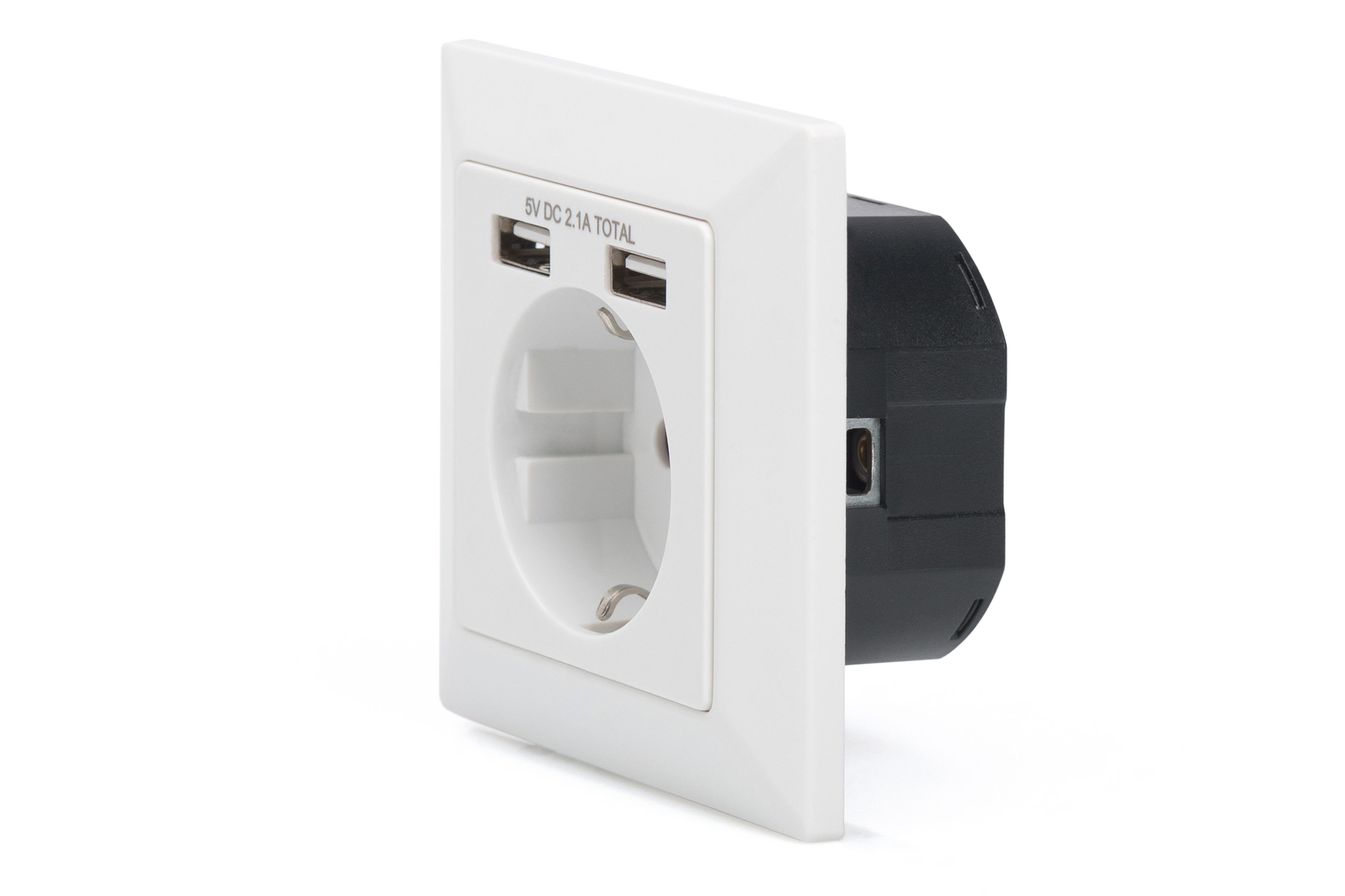 Assmann Electronic - Prise de courant 2 x USB, 5 V, 2,1 A, Entrée : 250 VCA, 50 Hz, blanc - DA-70613