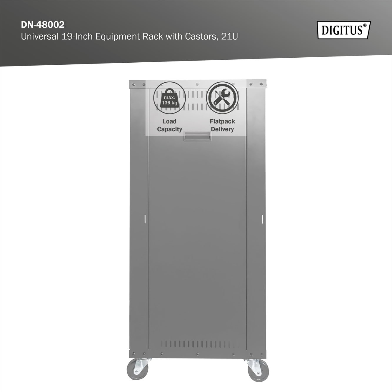 Assmann Electronic - Rack AV 21U, 1000 x 507 x 460 mm Trous filetés, roulettes, noir - DN-48002
