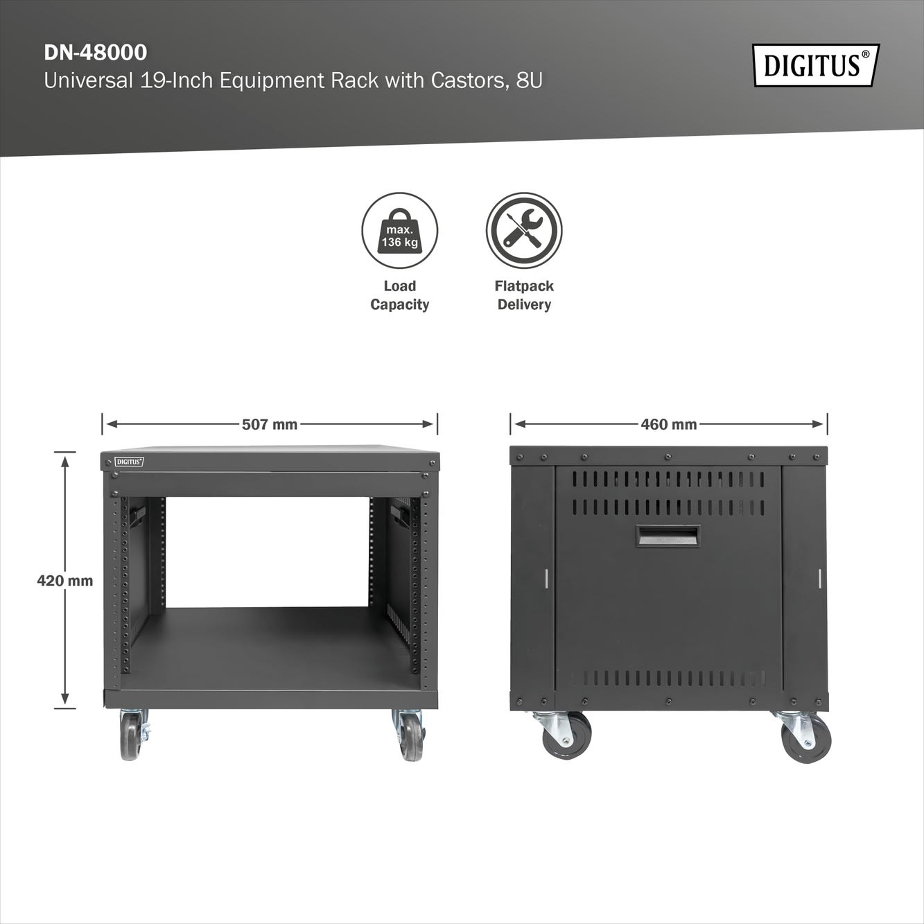 Assmann Electronic - Rack AV 8U, 420 x 507 x 460 mm Trous filetés, roulettes, noir - DN-48000